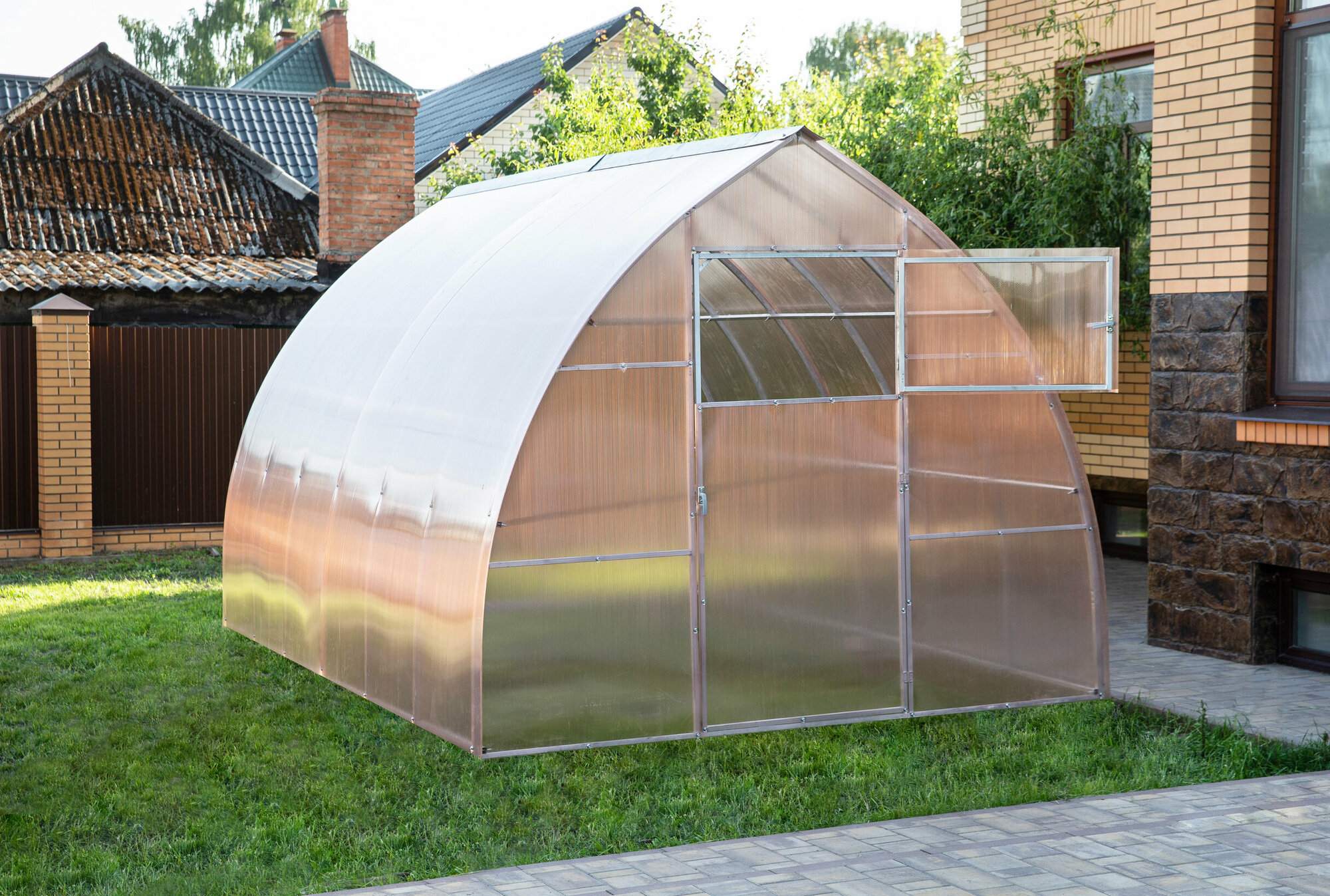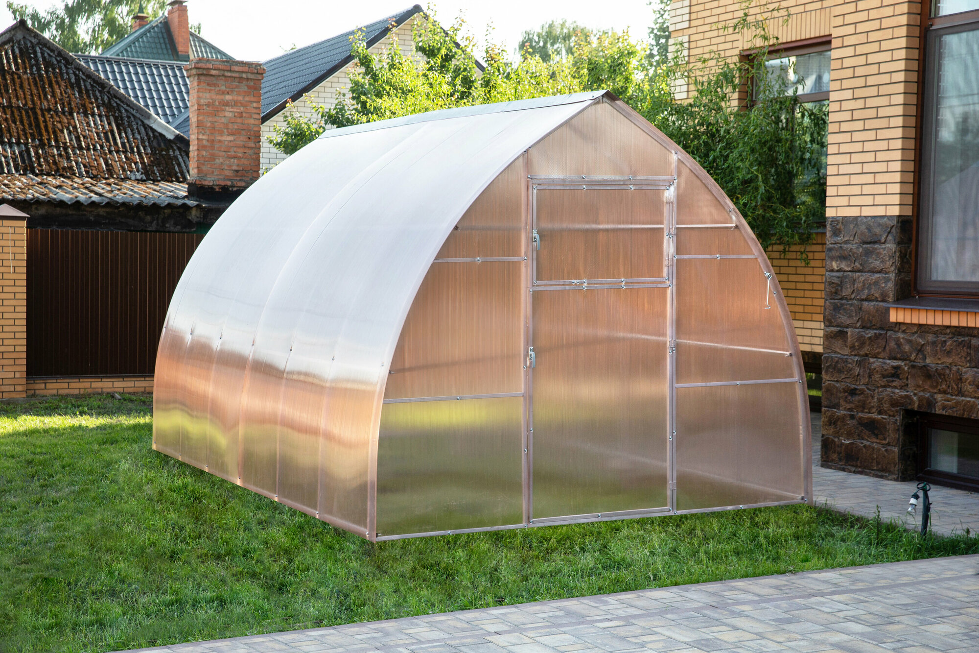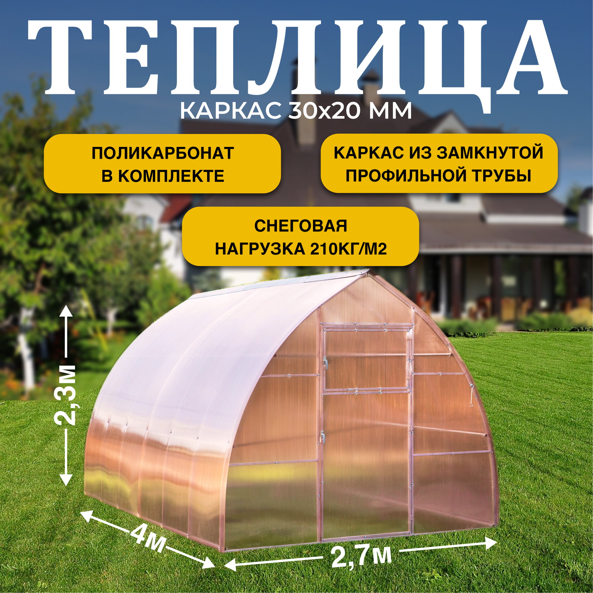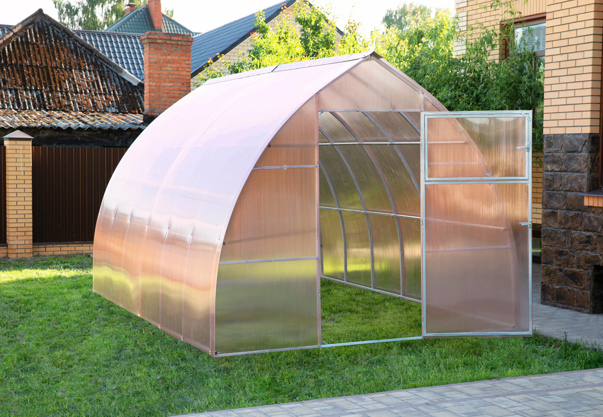 Теплица ТМК Стелла. Каркас из профильной трубы 30х20 мм, нано поликарбонат с УФ защитой розовый 4 мм, 4х2,7х2,3 м интересное: