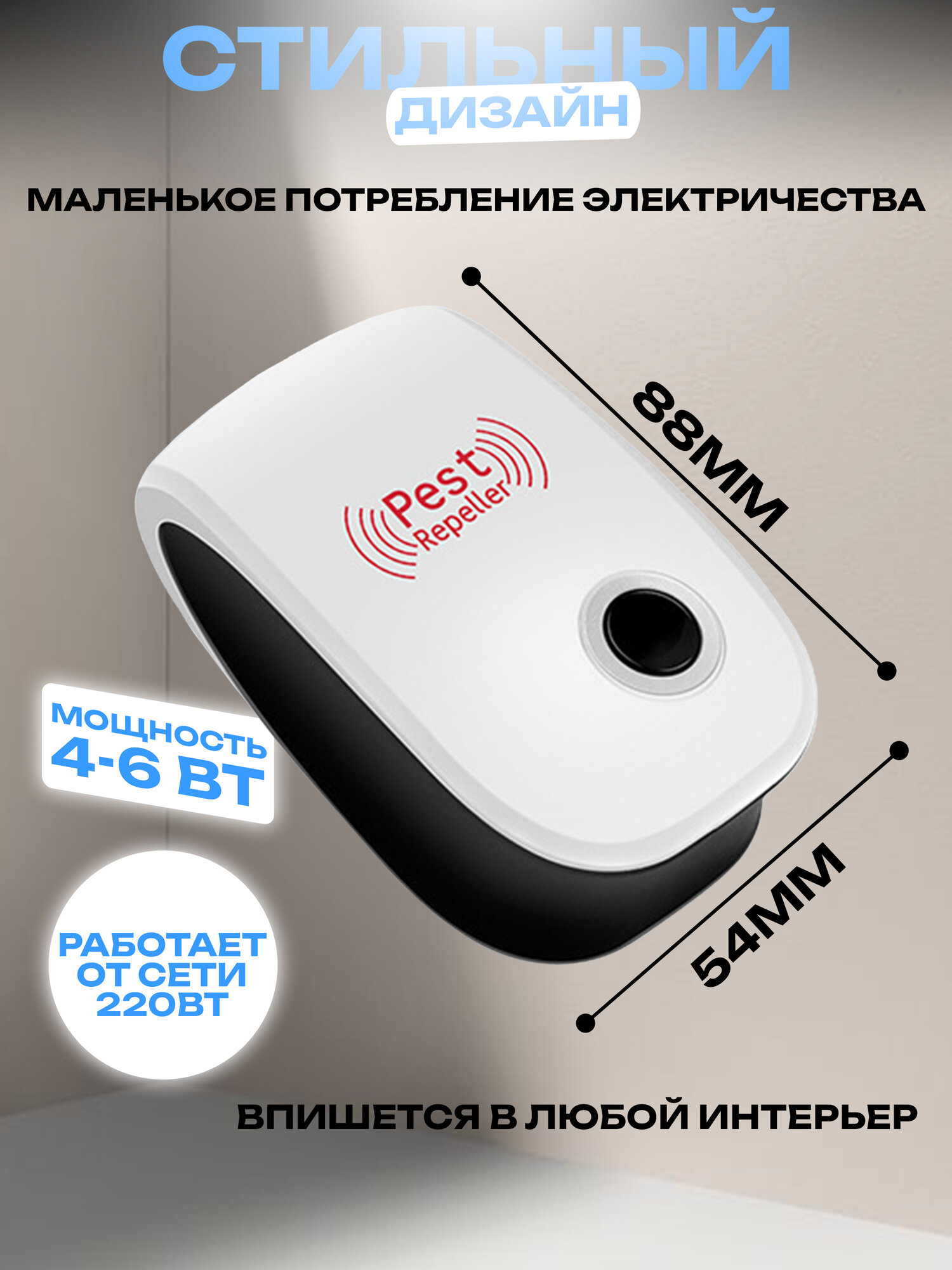 Ультразвуковой отпугиватель Pest Reject RA-52185 (200 кв. м.) белый