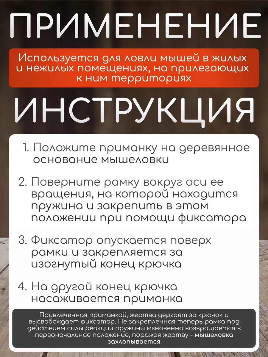 Ниже Вы можете прочитать отзывы на Мышеловка деревянная механическая, ознакомится с подробными характеристиками, посмотреть интересные обзоры и фотографии на Мышеловка деревянная механическая.