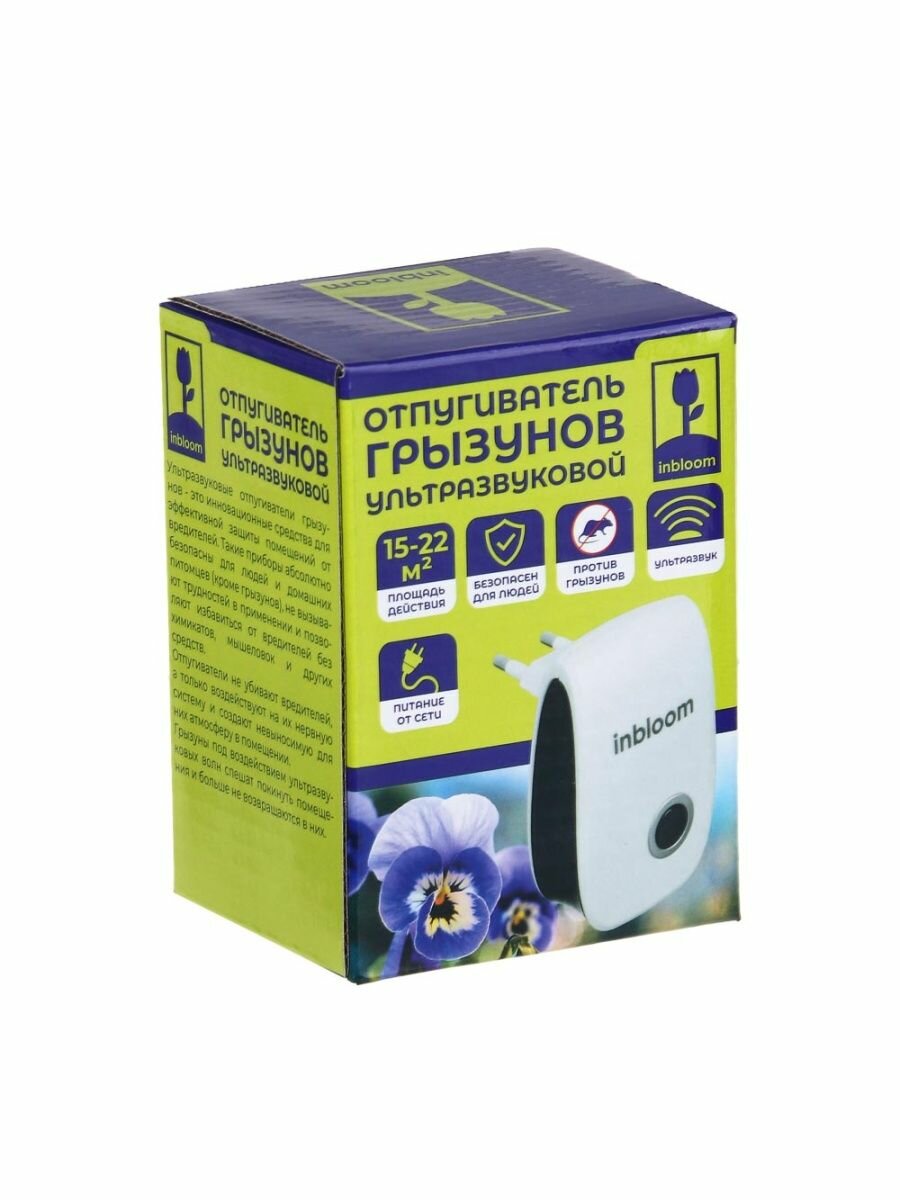 INBLOOM Отпугиватель ультразвуковой 85х55х30мм, АС90-220V, 50Hz, 5W, 15-22м2, ABS интересное: