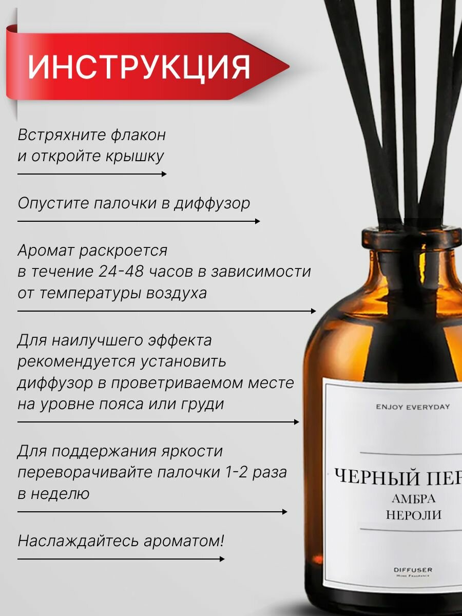Ароматический диффузор Черный перец, Амбра, Нероли / ароматизатор для дома с палочками