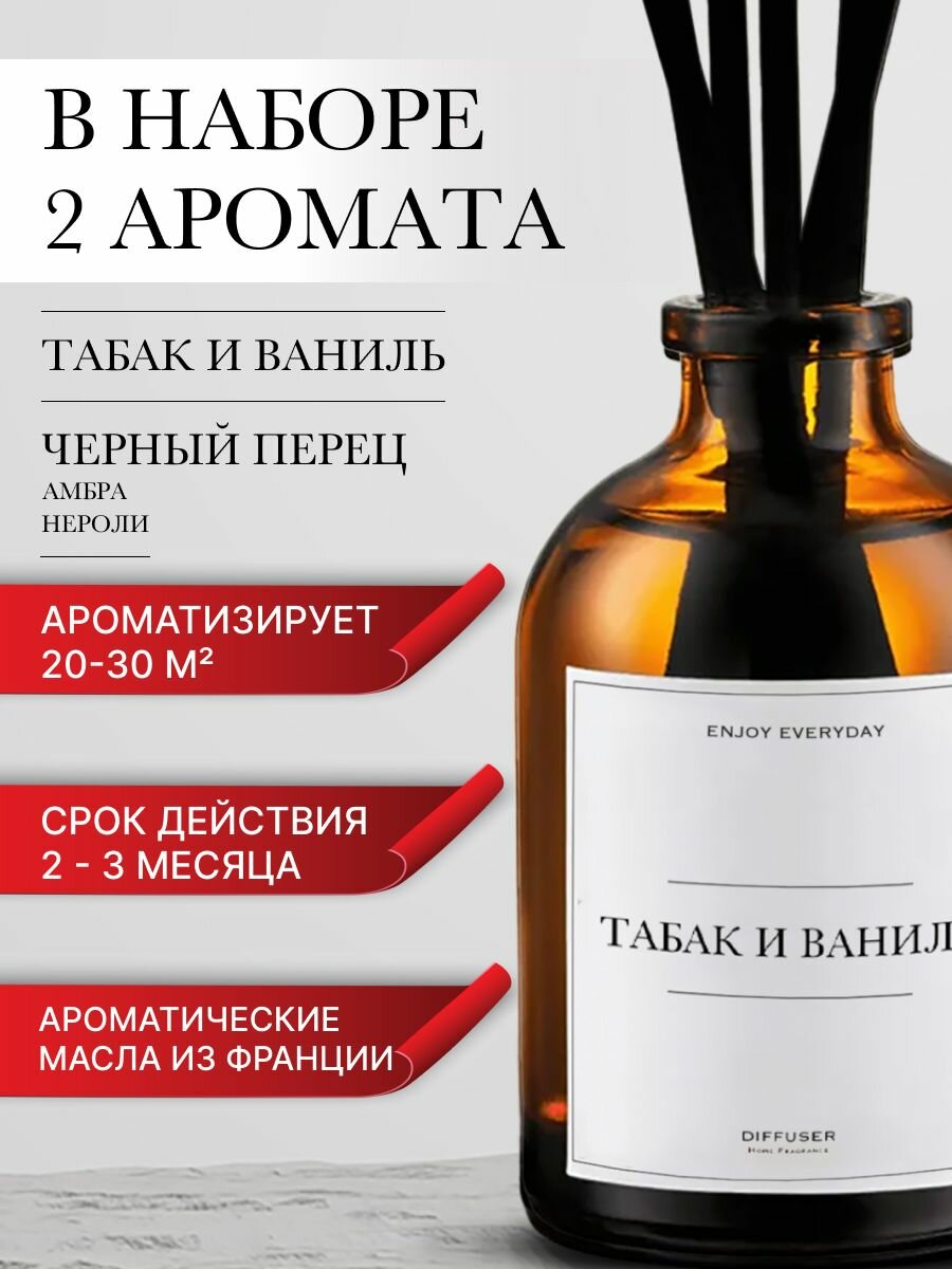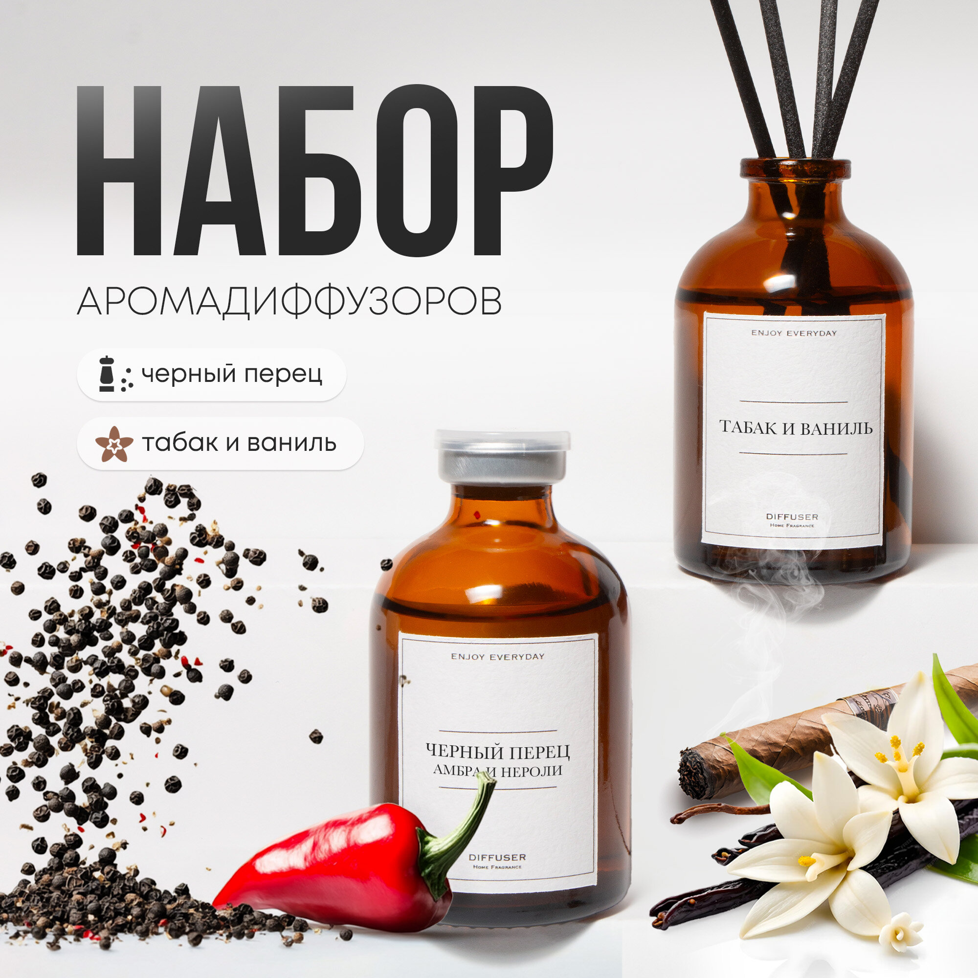 Купить Набор ароматических диффузоров Черный Перец, Амбра, Нероли + Табак и Ваниль / ароматизатор для дома с палочками 2 шт