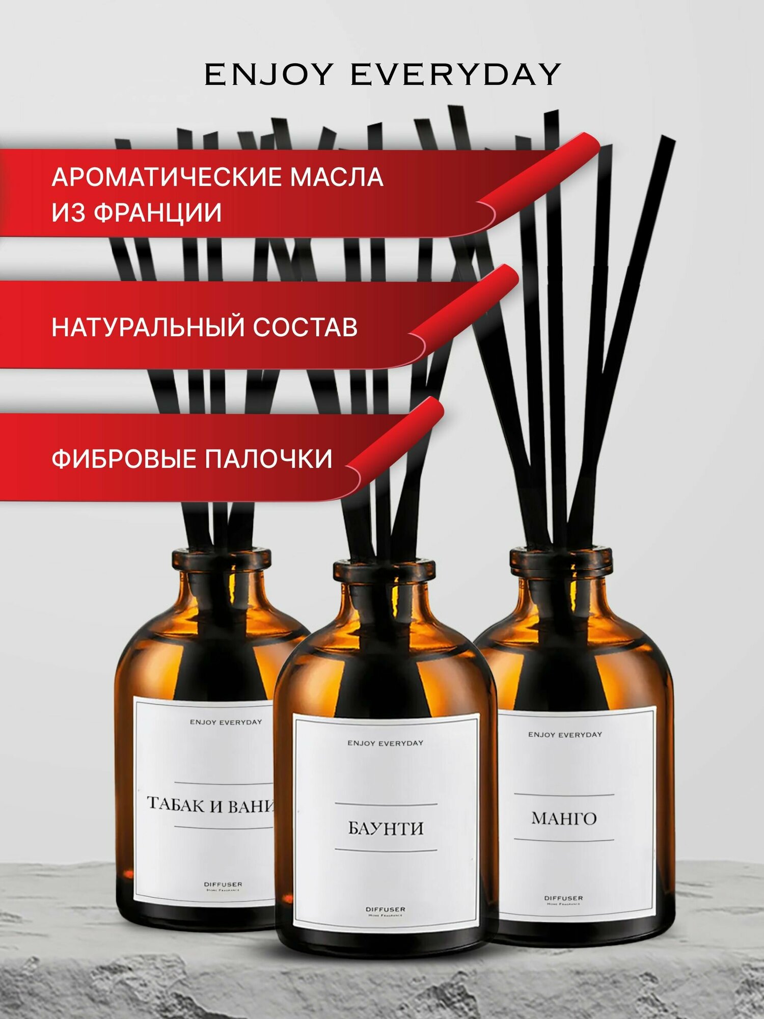 Набор ароматических диффузоров Черный перец + Баунти + Табак и ваниль/ ароматизатор для дома с палочками 3 шт