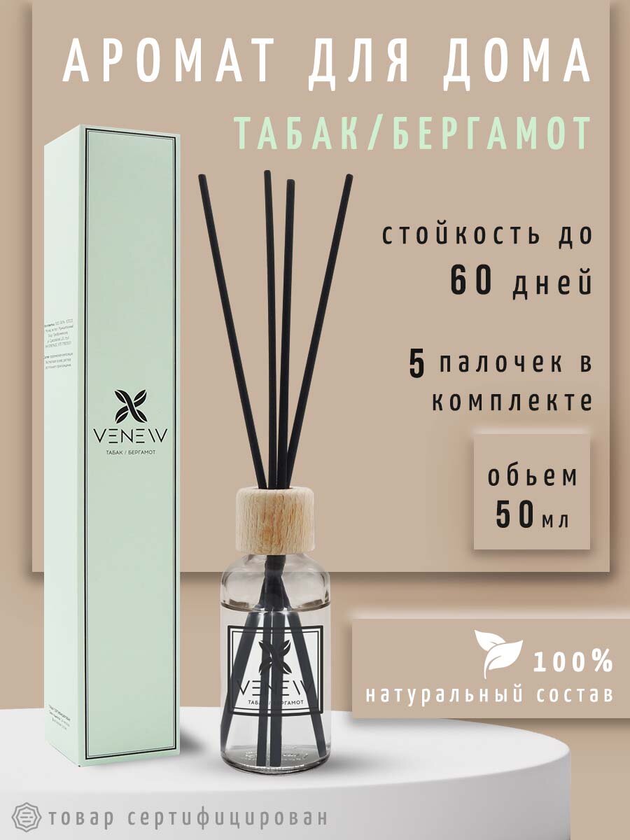 СохранитьДиффузор для дома, ароматизатор с палочками VENEW "Табак / бергамот" интересное: