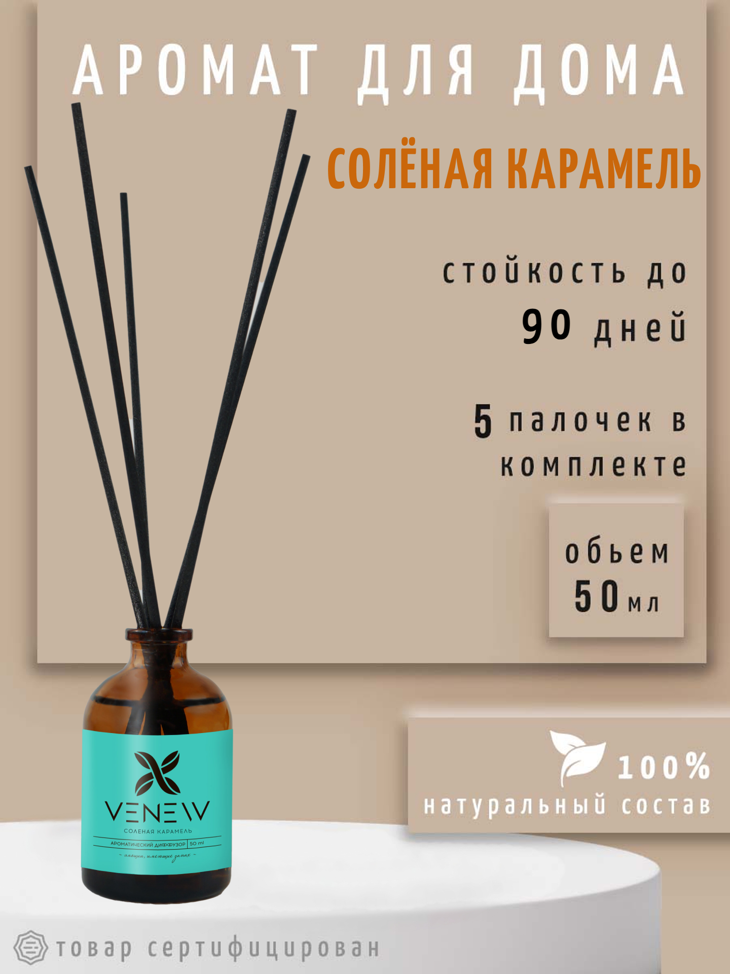 Диффузор для дома, ароматизатор с палочками VENEW "Соленая карамель" интересное: