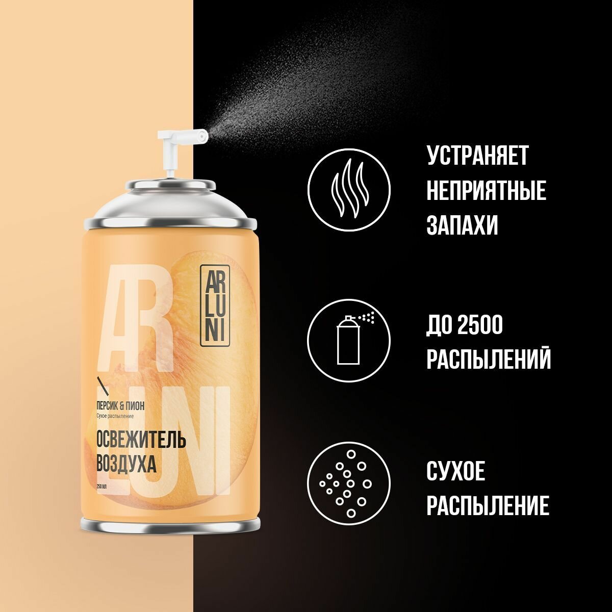 Купить Освежитель воздуха Arluni персик, пион, сменный аэрозольный баллон, 250 мл