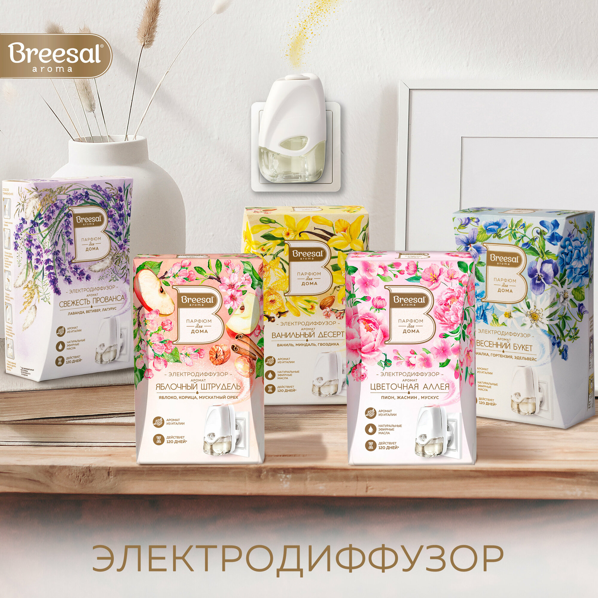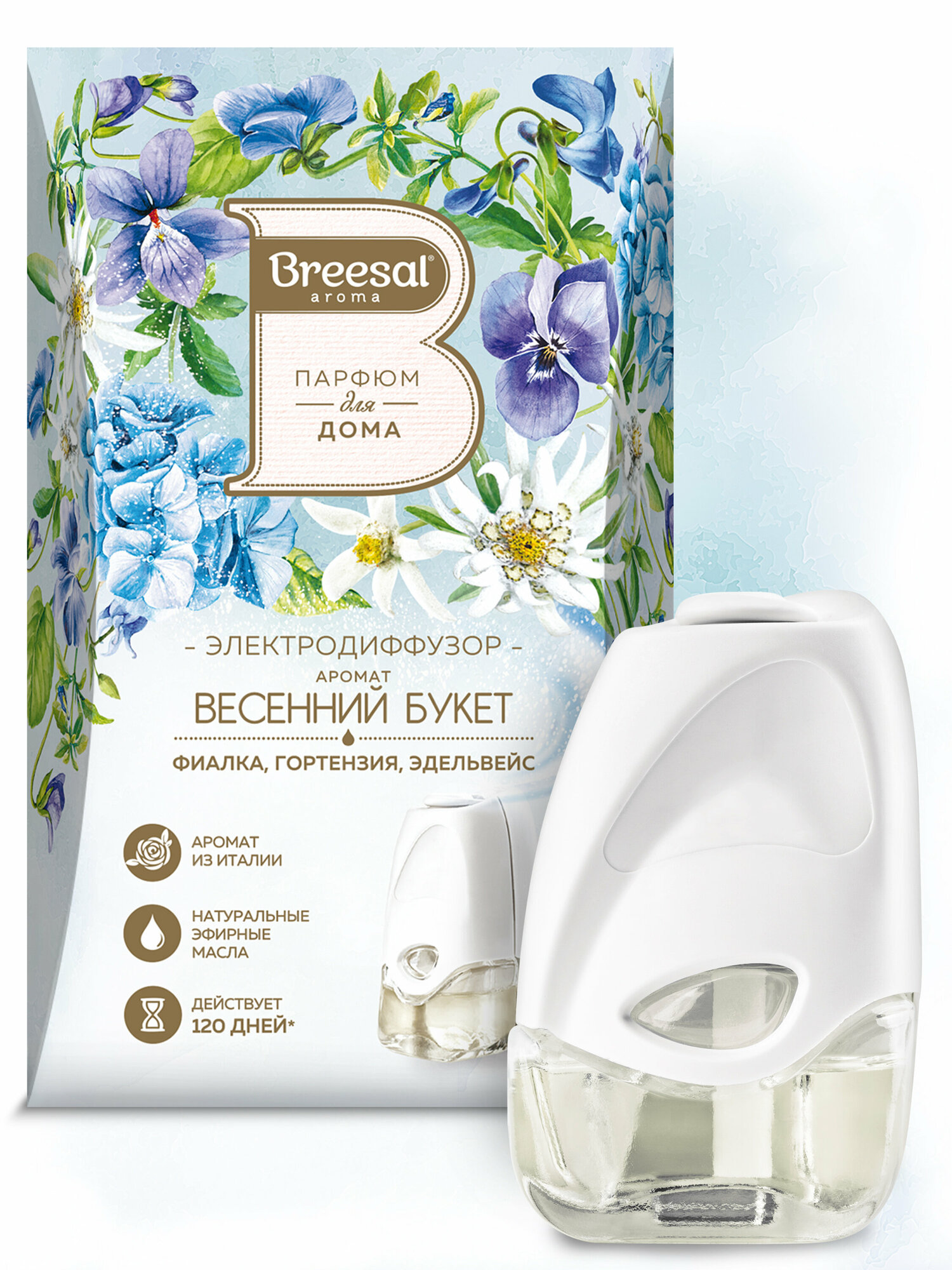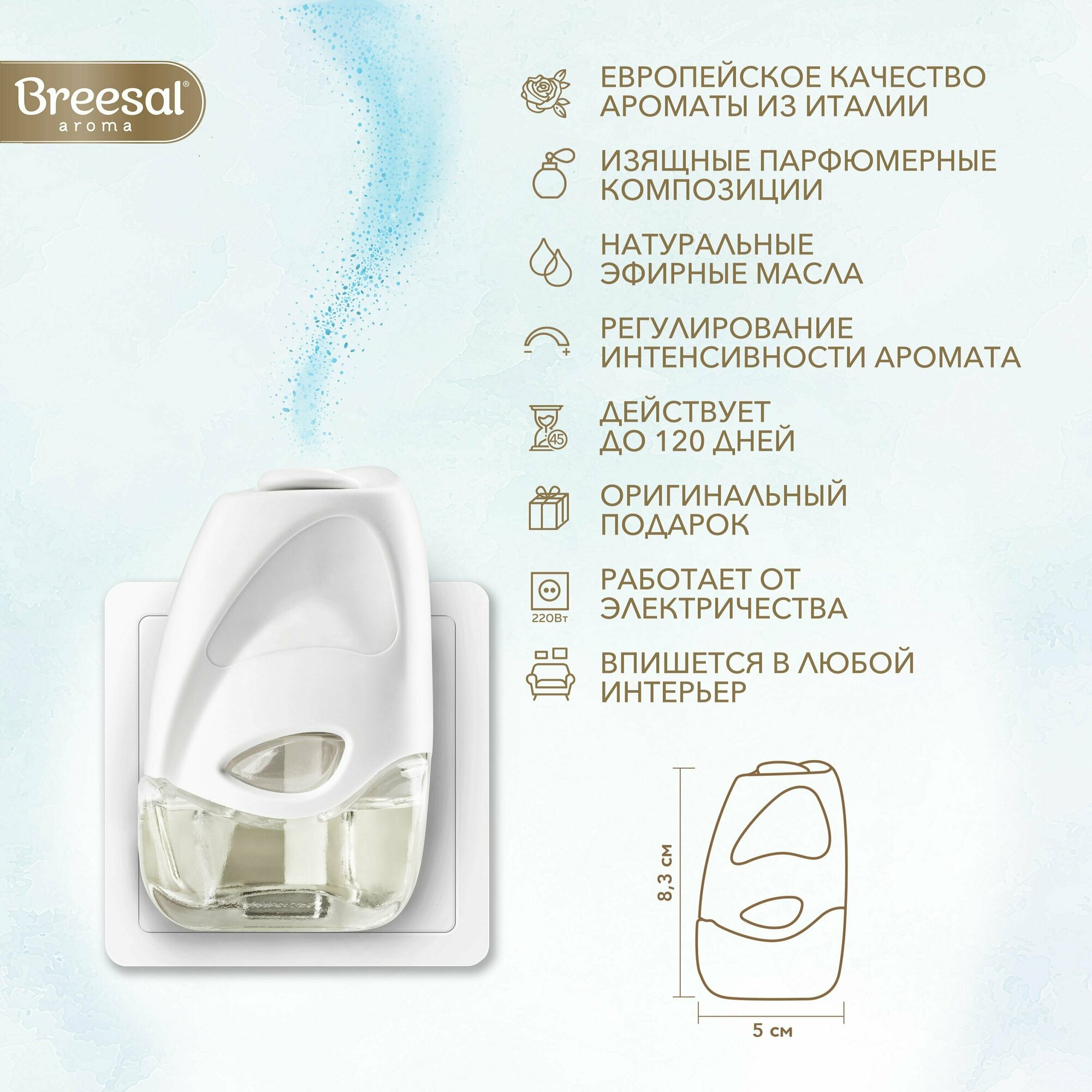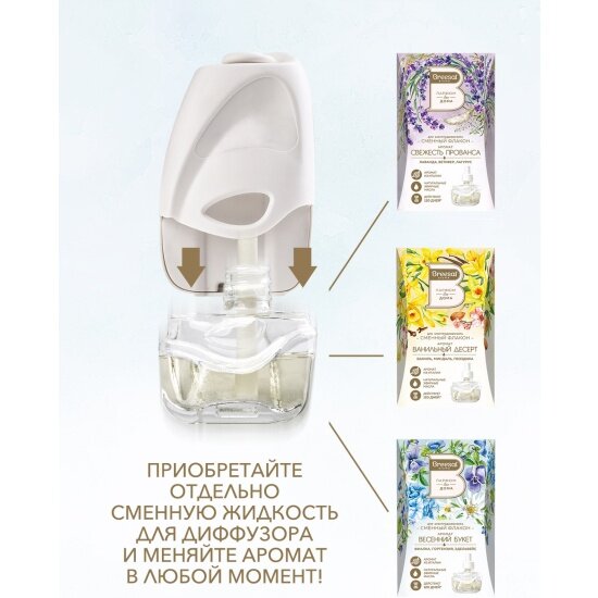 | Подробная комплектация | Электрический диффузор Breesal со сменным флаконом 20 мл |