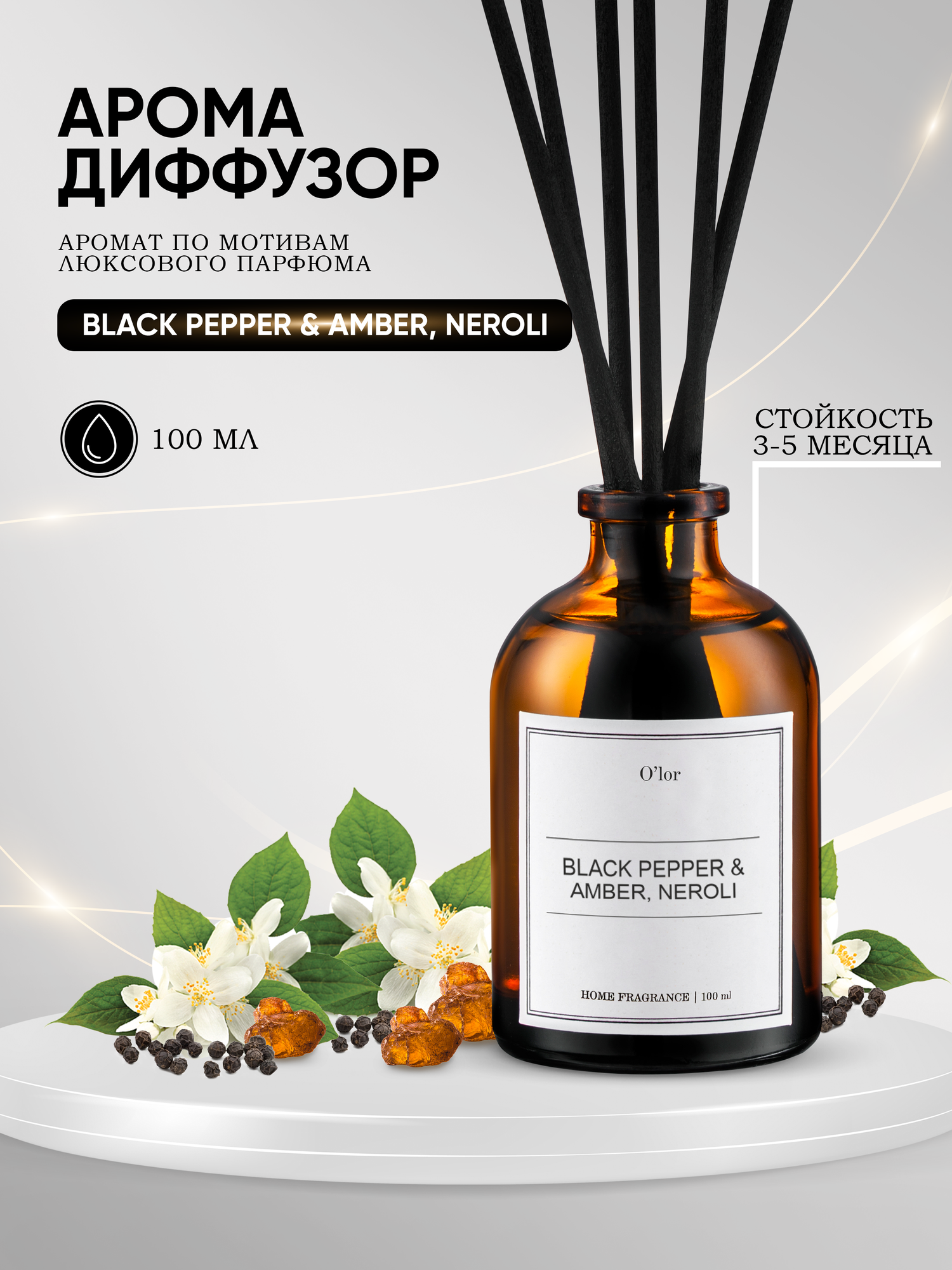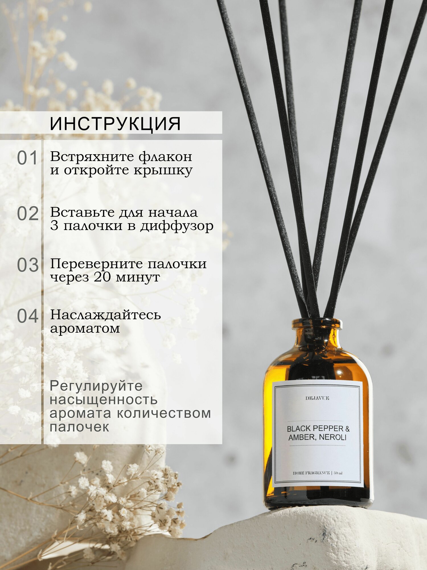 Ароматический диффузор Dejavue Black Pepper & amber, neroli / ароматизатор для дома с палочками 100 мл интересное: