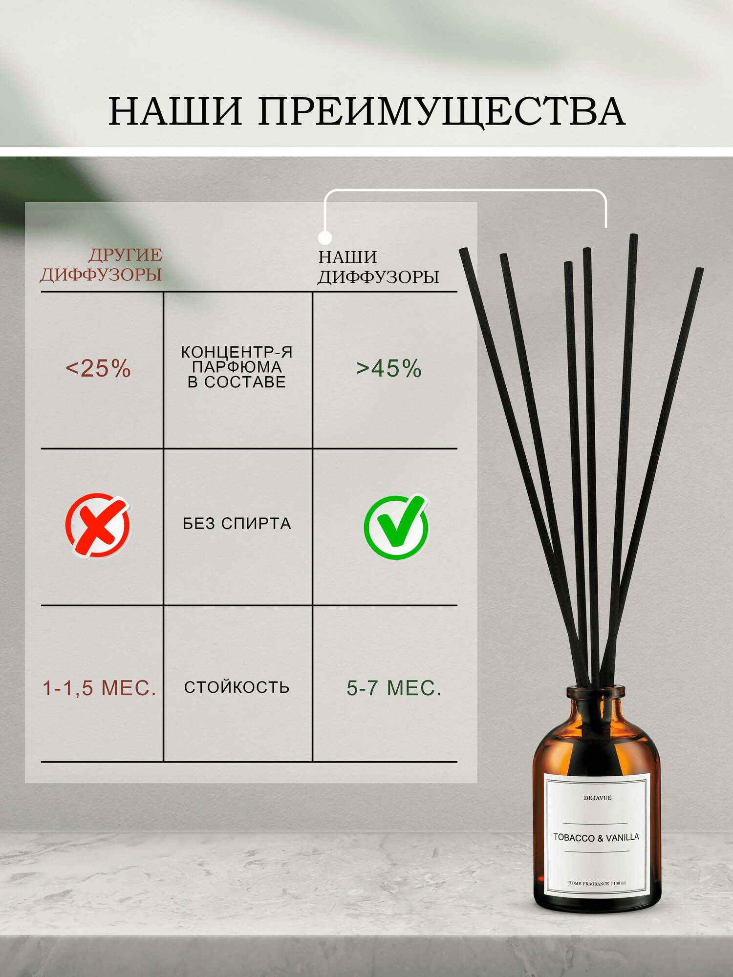 Ниже Вы можете прочитать отзывы на Ароматический диффузор Dejavue Tobacco & vanilla / ароматизатор для дома с палочками 100 мл, ознакомится с подробными характеристиками, посмотреть интересные обзоры и фотографии на Ароматический диффузор Dejavue Tobacco & vanilla / ароматизатор для дома с палочками 100 мл.