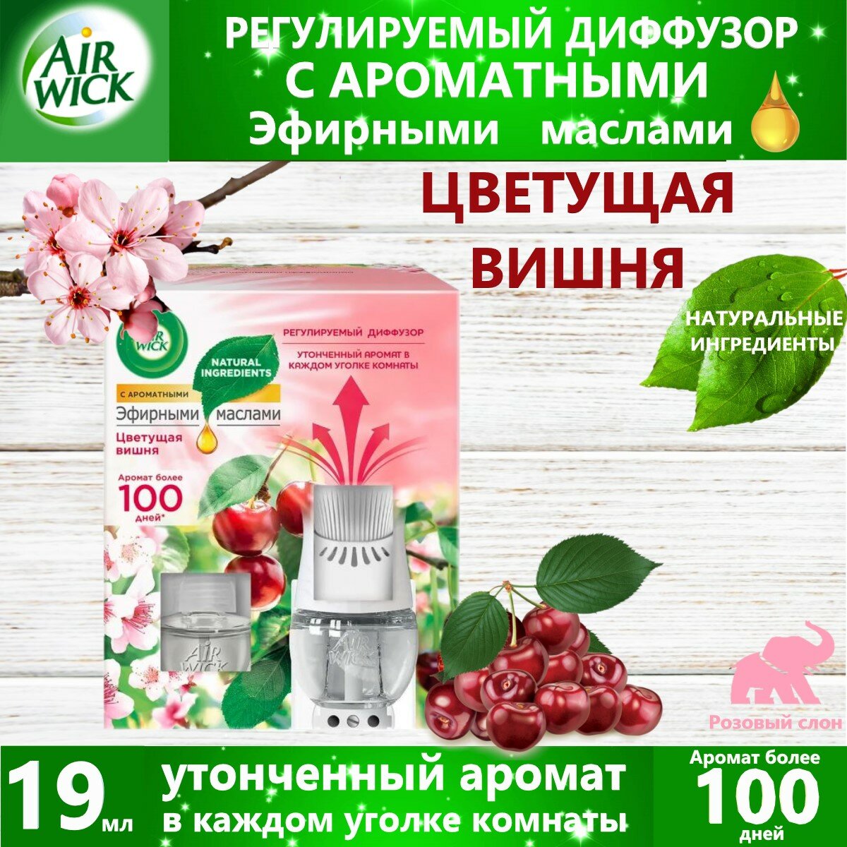 Диффузор аромамасел+сменный флакон Air Wick Эфирные Масла Цветущая Вишня 19 мл интересное: