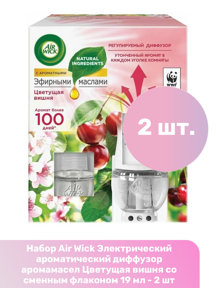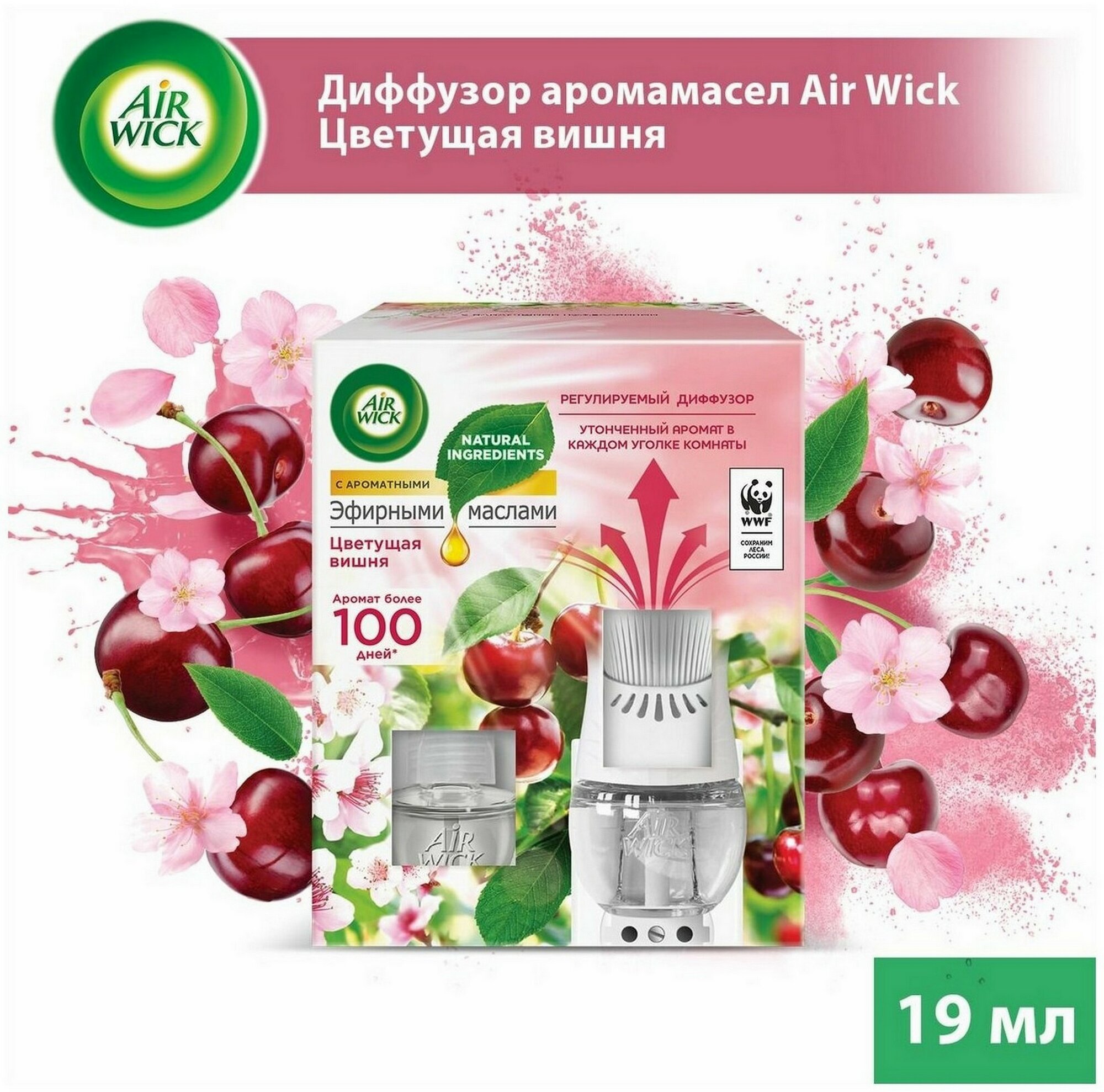 Электрический ароматический диффузор аромамасел Air Wick , Цветущая вишня для дома со сменным блоком, освежитель воздуха 19 мл