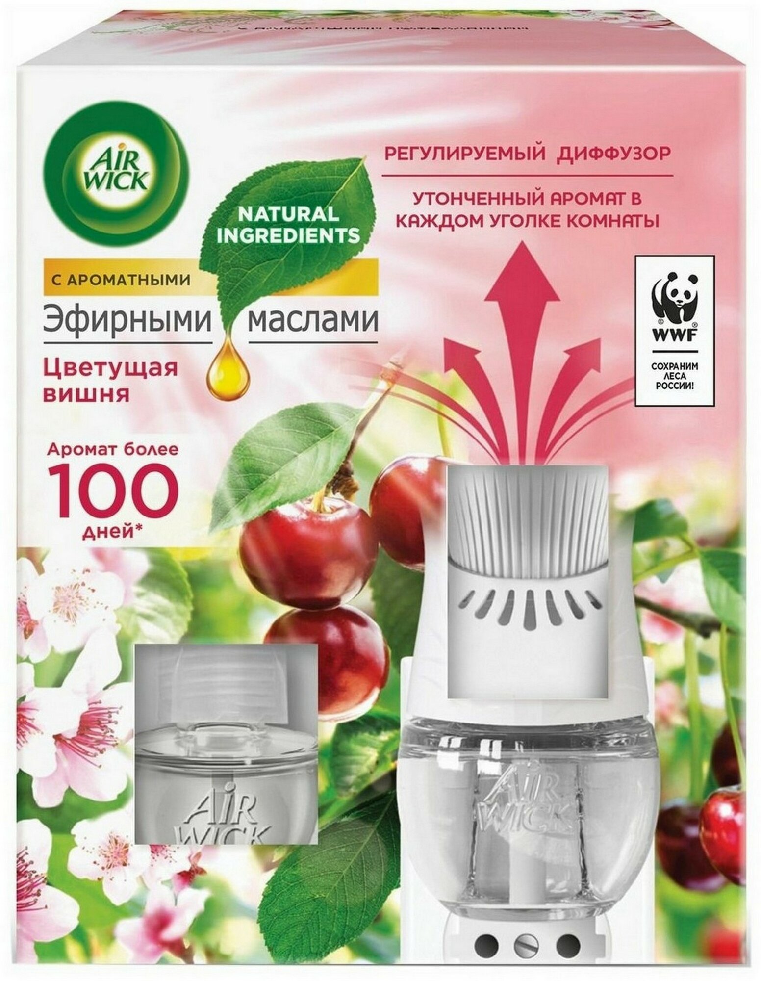 Освежитель воздуха автоматический AirWick набор: диффузор аромамасел со сменным флаконом, цветущая вишня, 19 мл