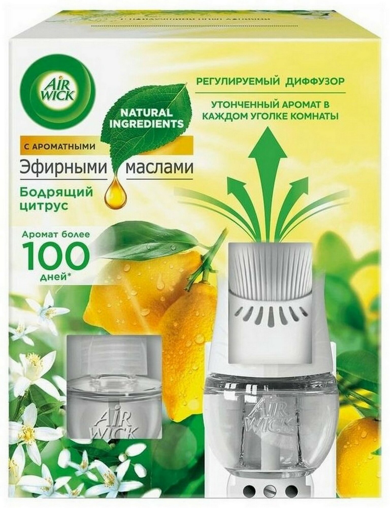 Электрический ароматический диффузор аромамасел Air Wick Бодрящий цитрус для дома со сменным флаконом, освежитель воздуха 19 мл