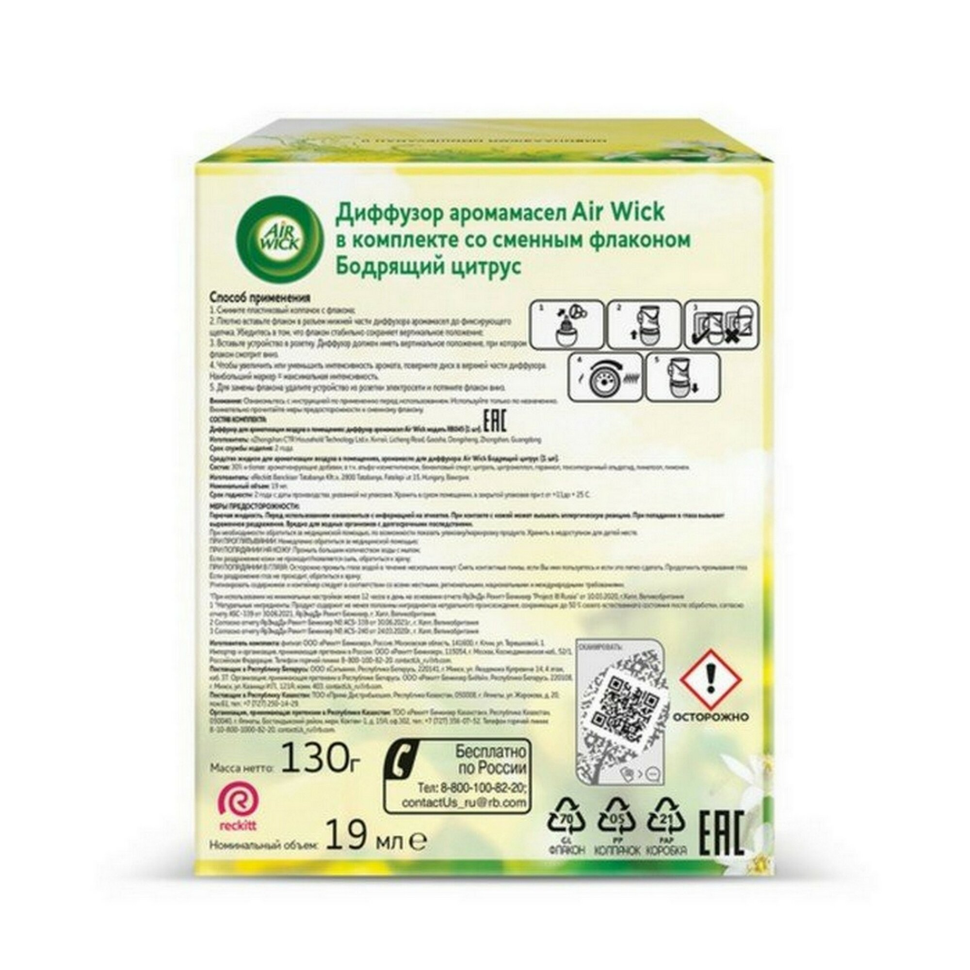 Купить Диффузор аромамасел Air Wick в комплекте со сменным флаконом Бодрящий цитрус 19 мл. х 2 шт.