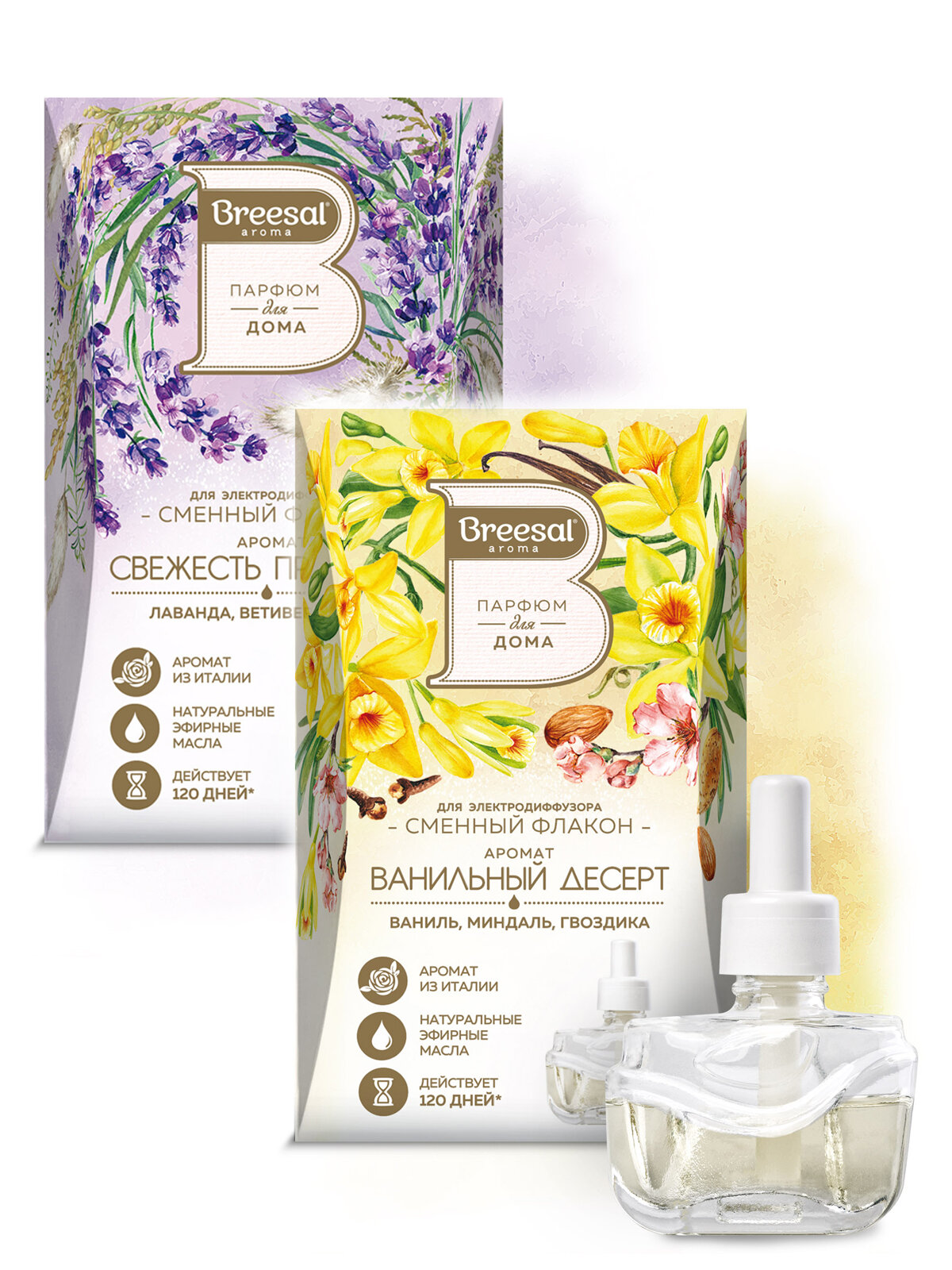 Купить Сменный флакон для электродиффузора Breesal "Свежесть Прованса", 20 мл и "Ванильный десерт", 20 мл