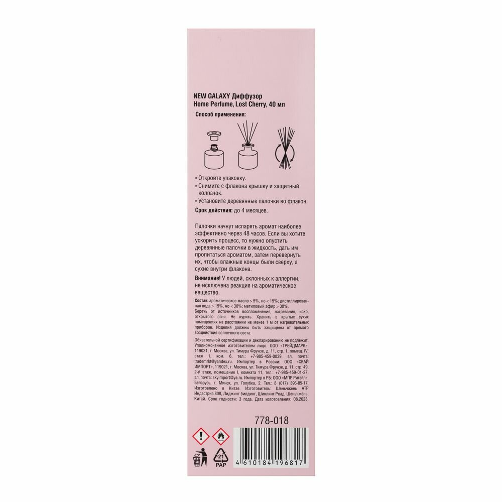 NEW GALAXY Диффузор Home Perfume, Lost Cherry 40мл интересное: