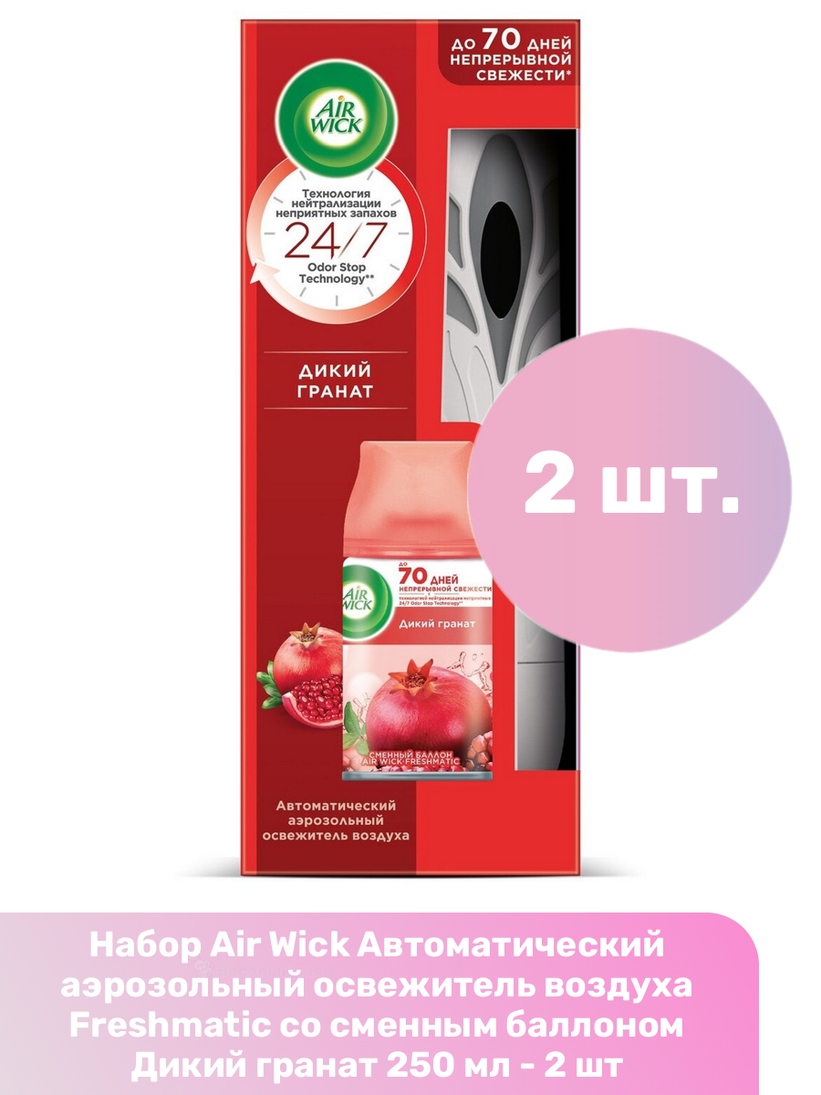 Купить Air Wick Автоматический аэрозольный освежитель воздуха Freshmatic со сменным баллоном Дикий гранат 250 мл - 2 шт