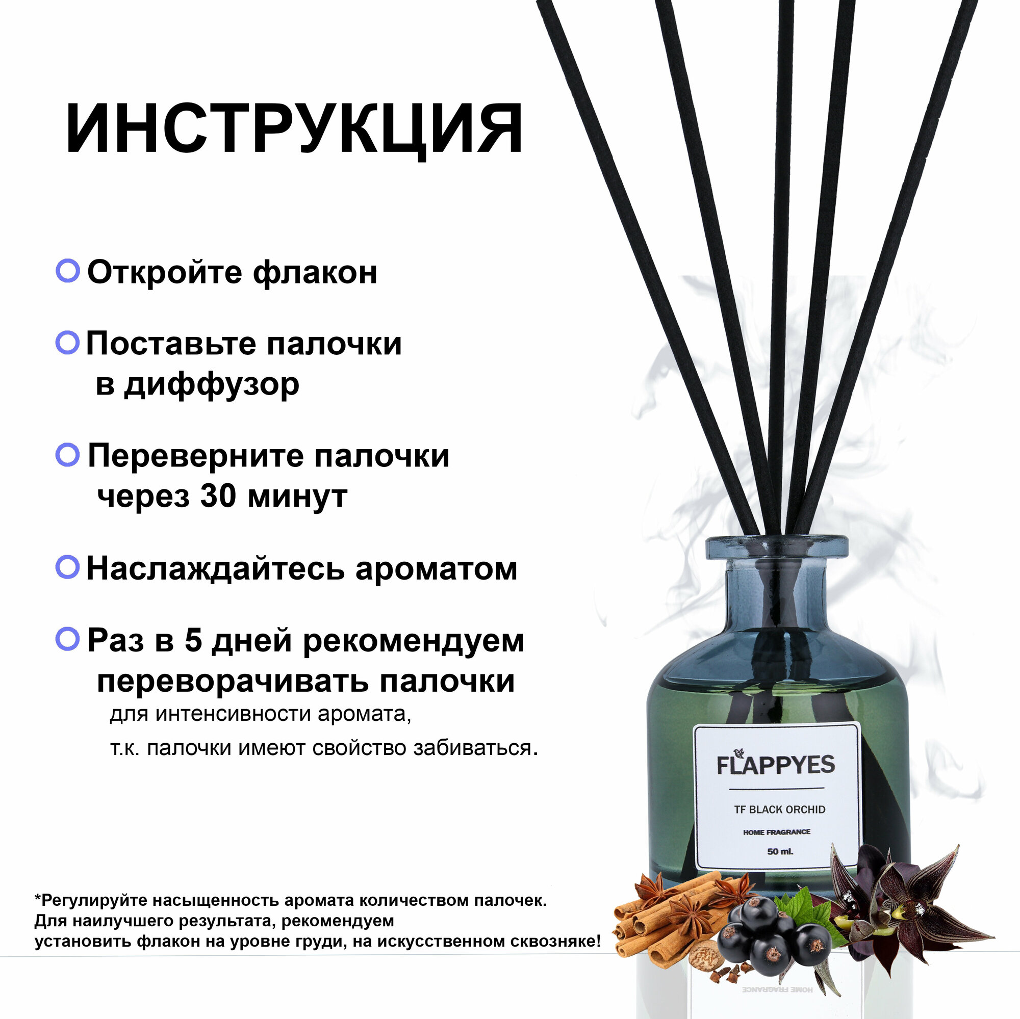 СохранитьАроматический диффузор с палочками для дома "Flappyes - TF Black Orchid" / Ароматизатор для дома / аромадиффузор интересное: