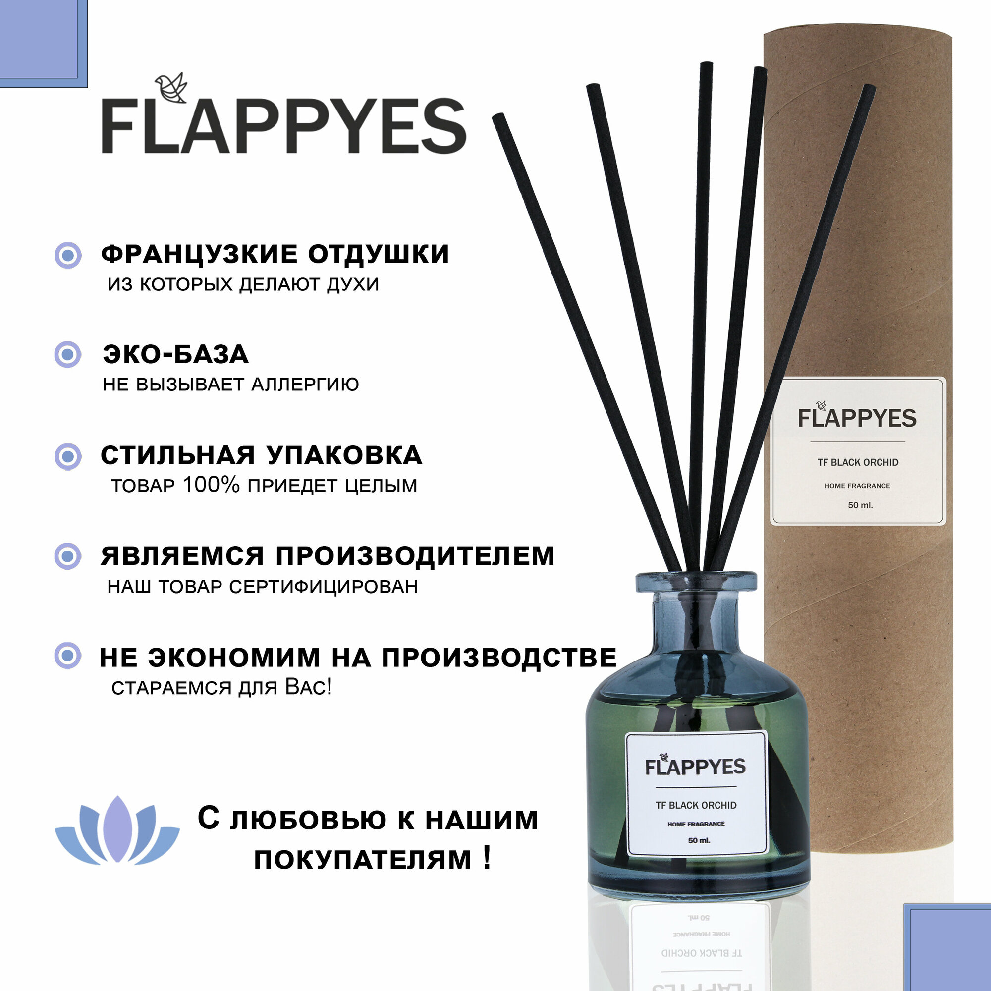 Купить Ароматический диффузор с палочками для дома "Flappyes - TF Black Orchid" / Ароматизатор для дома / аромадиффузор