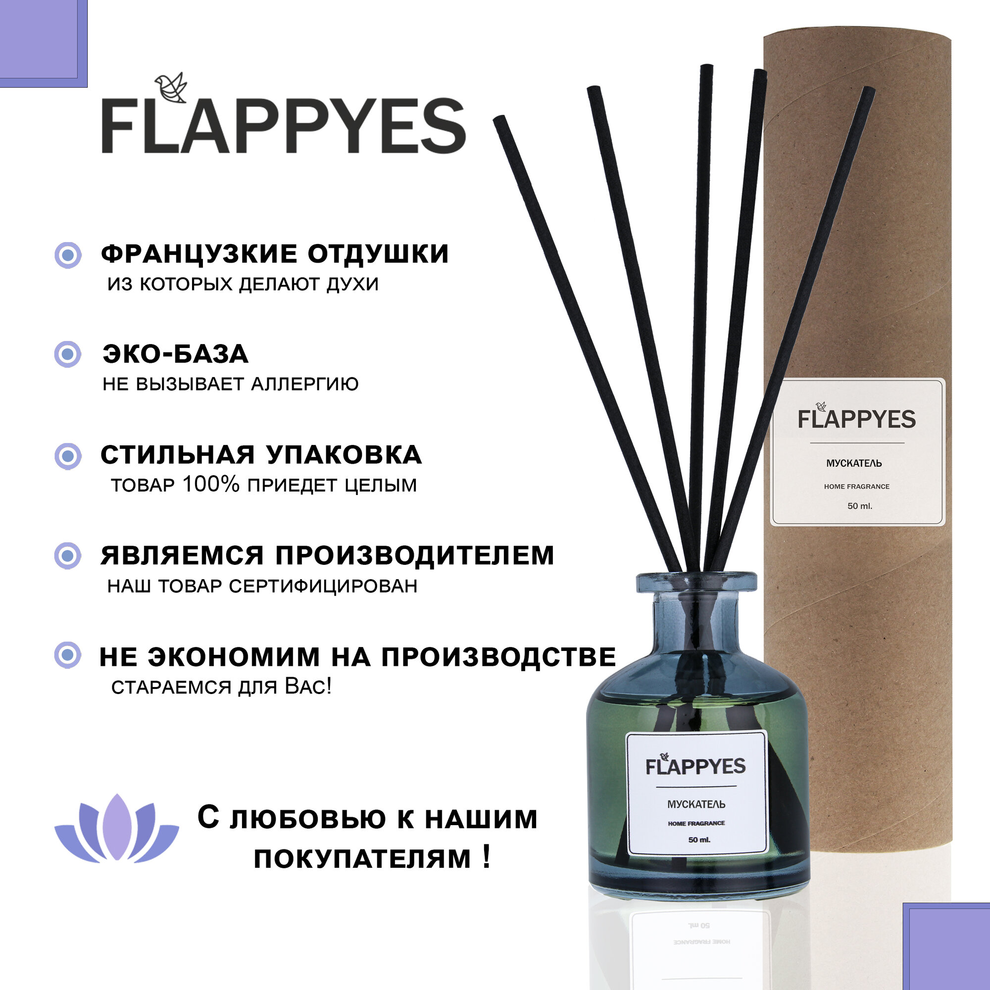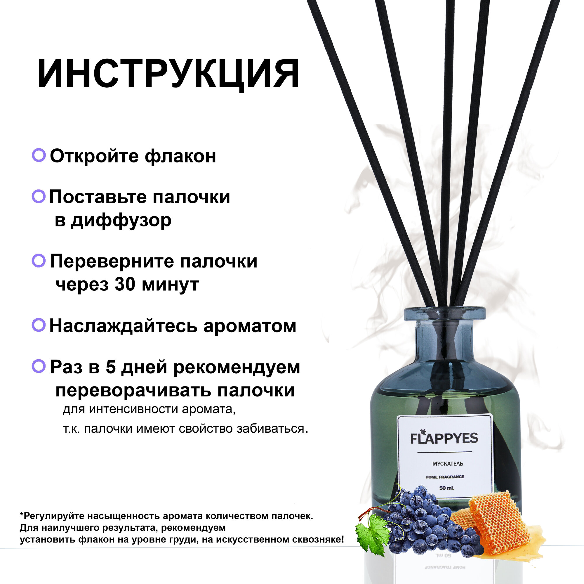 Купить Ароматический диффузор с палочками для дома "Flappyes - Мускатель" / Ароматизатор для дома / аромадиффузор