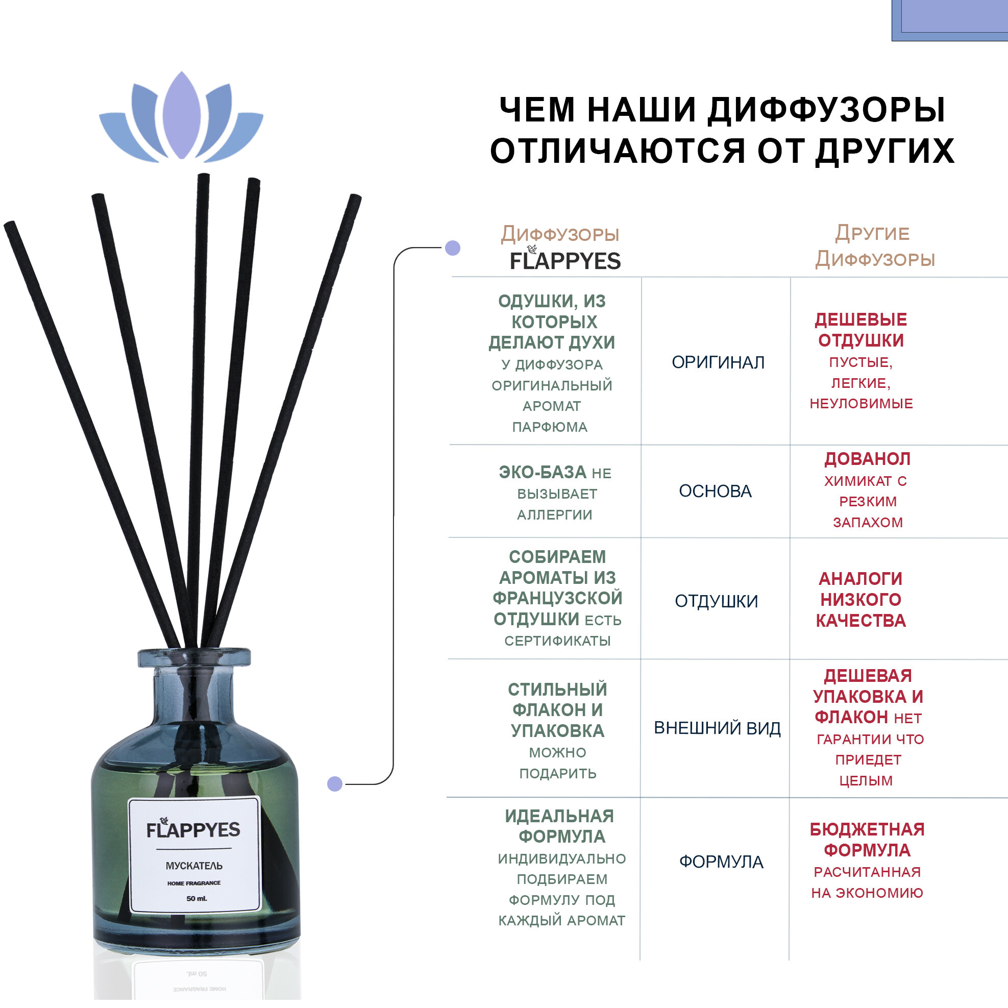 Ниже Вы можете прочитать отзывы на Ароматический диффузор с палочками для дома "Flappyes - Мускатель" / Ароматизатор для дома / аромадиффузор, ознакомится с подробными характеристиками, посмотреть интересные обзоры и фотографии на Ароматический диффузор с палочками для дома "Flappyes - Мускатель" / Ароматизатор для дома / аромадиффузор.