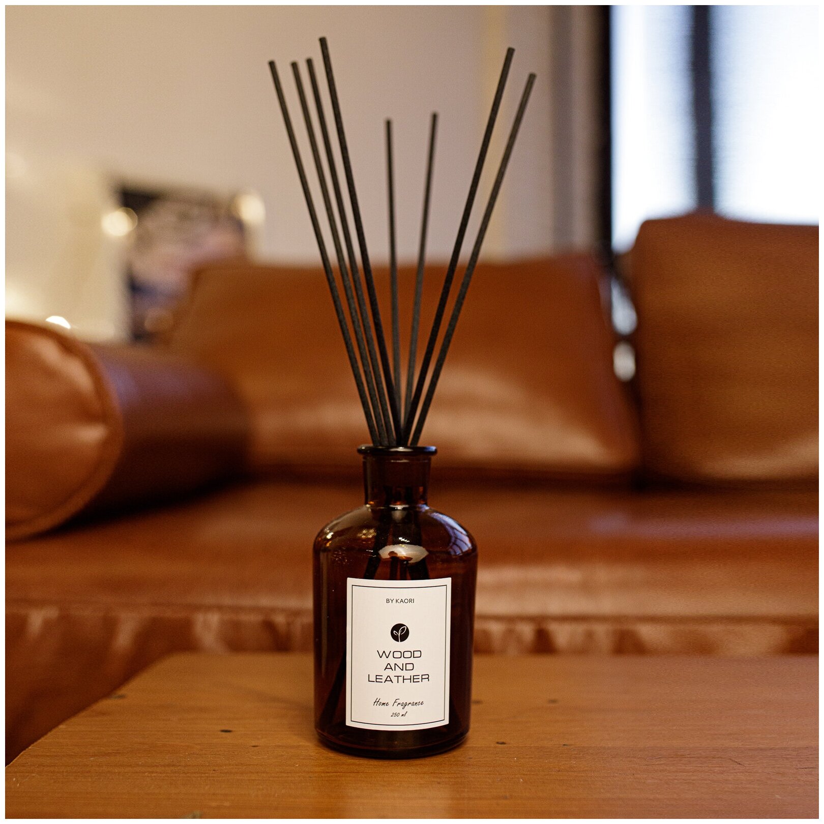 Ароматический диффузор для дома ароматизатор с палочками KAORI, набор L, WOOD AND LEATHER (Дерево и Кожа)
