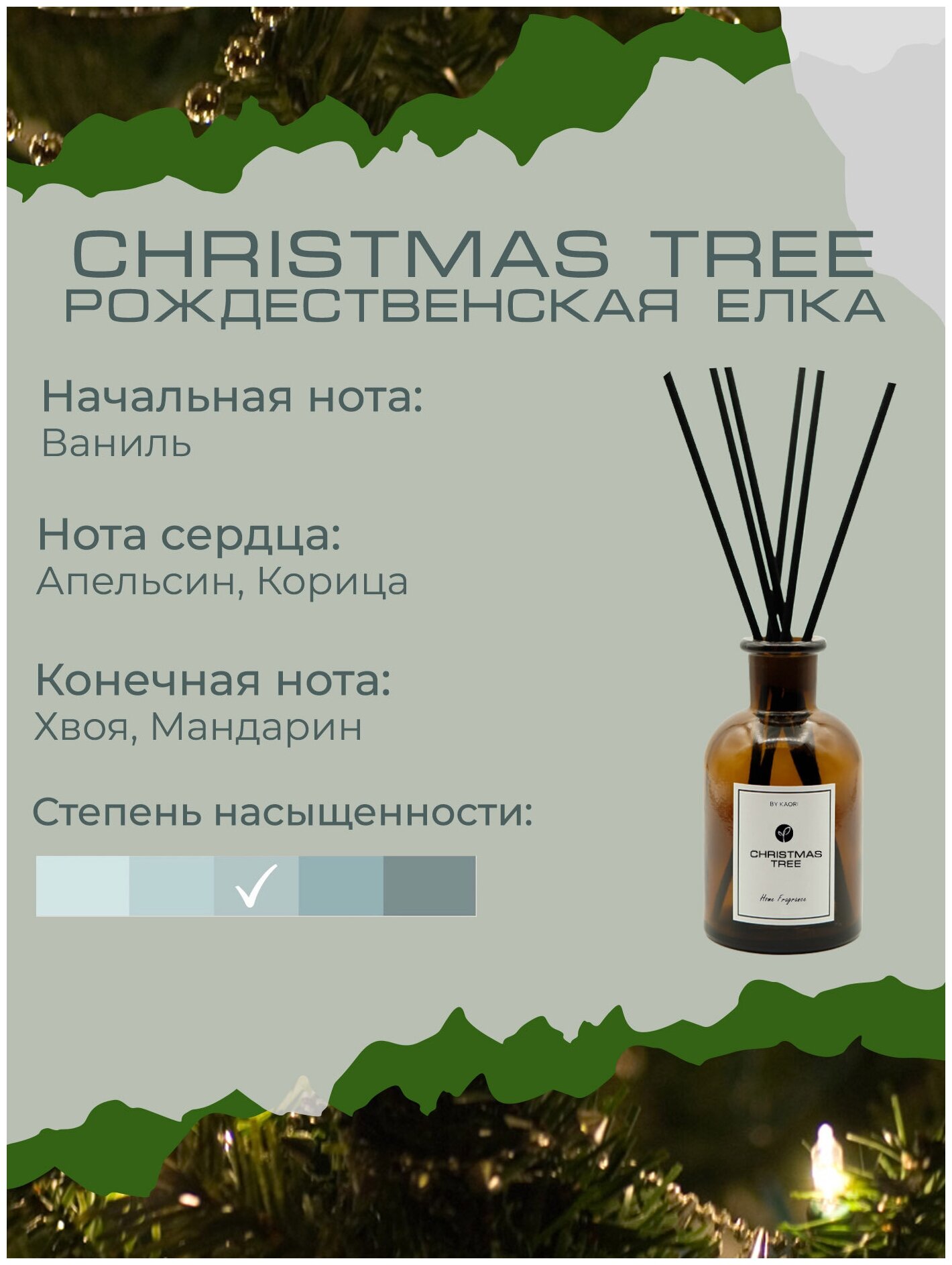 Ароматический диффузор BY KAORI, ароматизатор для дома с палочками, набор M, CHRISTMAS TREE (Рождественская ёлка)