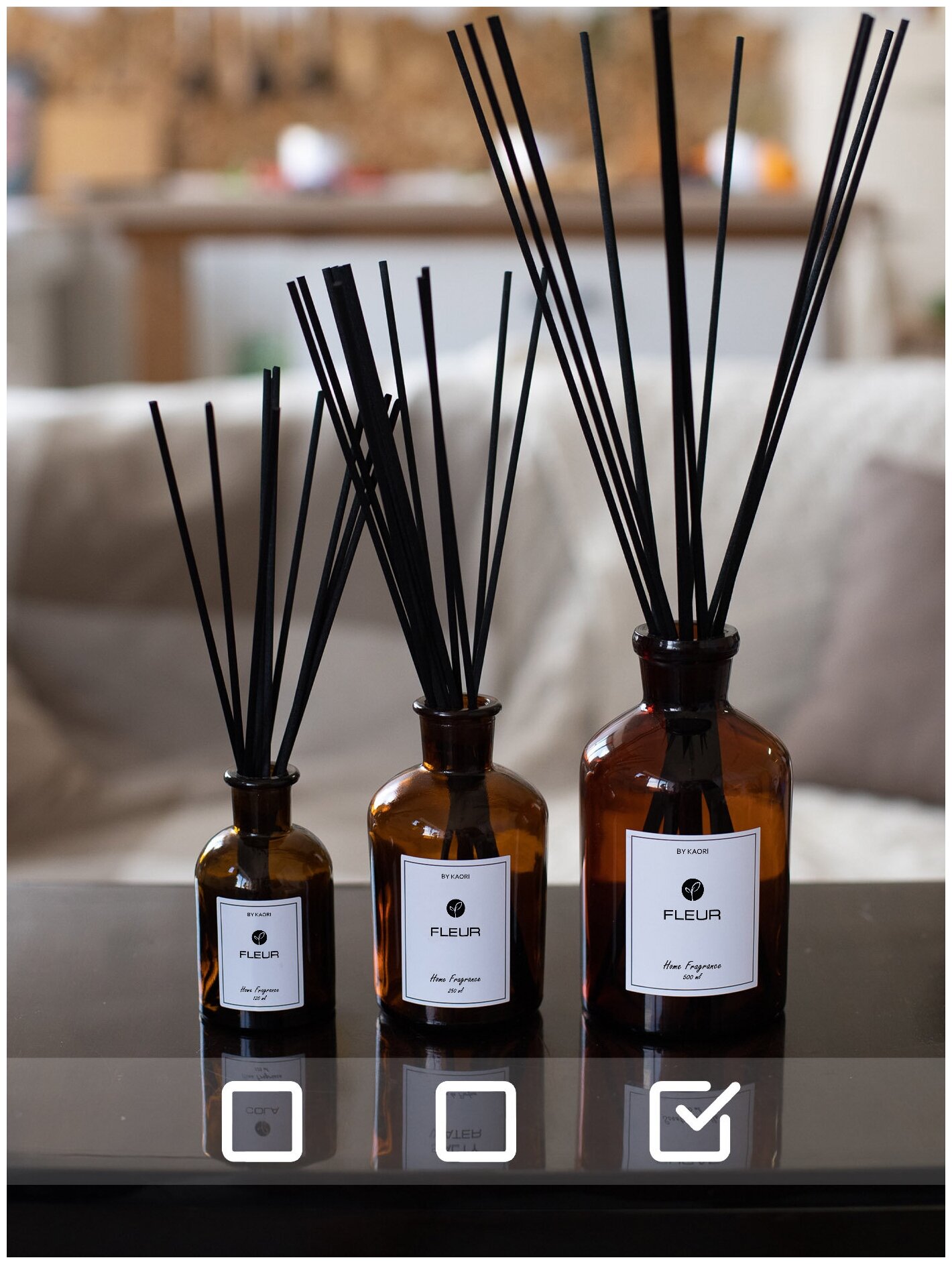Ароматический диффузор BY KAORI, ароматизатор для дома с палочками, набор M, DARK VANILLA (Темная ваниль)