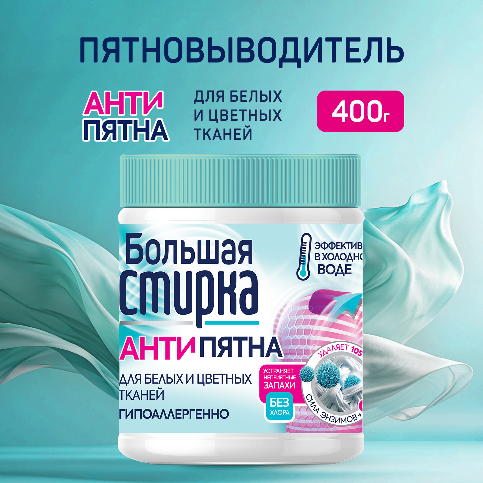 Большая Стирка пятновыводитель на основе активного кислорода, 400 г (банка) версия 2022 интересное: