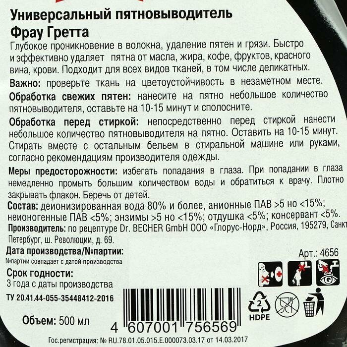 Пятновыводитель универсальный Frau Gretta 500 мл интересное: