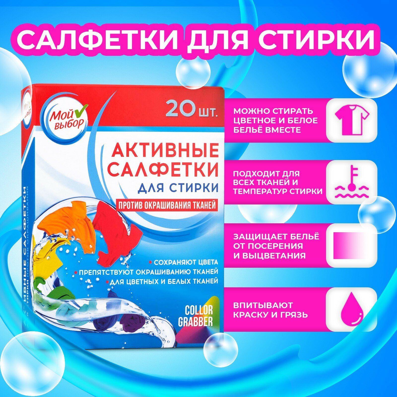 Купить Активные салфетки для стирки "Мой выбор", для разноцветных тканей, 20 шт