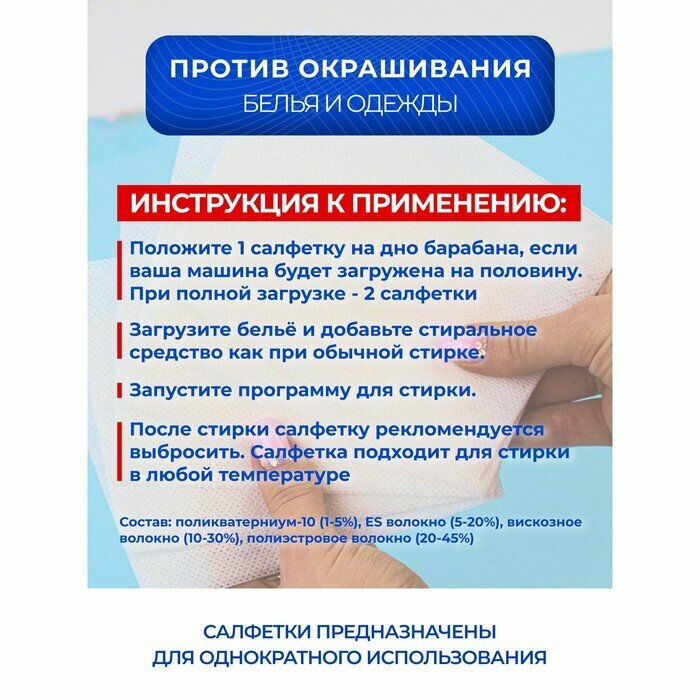 | Состав | 1-5% поликватерниум-10 / 5-20% ES волокно / 10-30% вискозное волокно / 20-45% полиэстровое волокно |