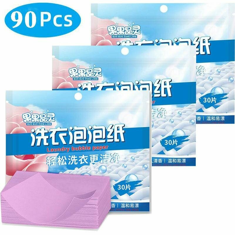 Пластины для стирки Laundry bubble paper. Стиральные листы 3*30шт (90штук), розовый интересное: