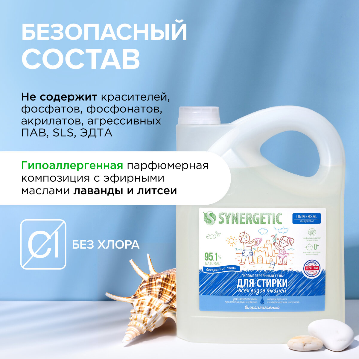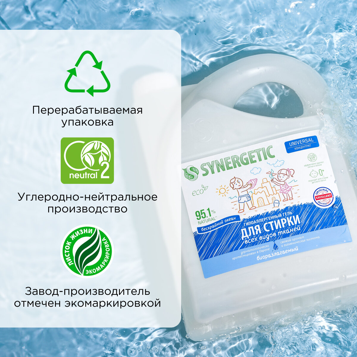 Биоразлагаемый гель для стирки "SYNERGETIC" - 83 стирки в 5 литрах интересное: