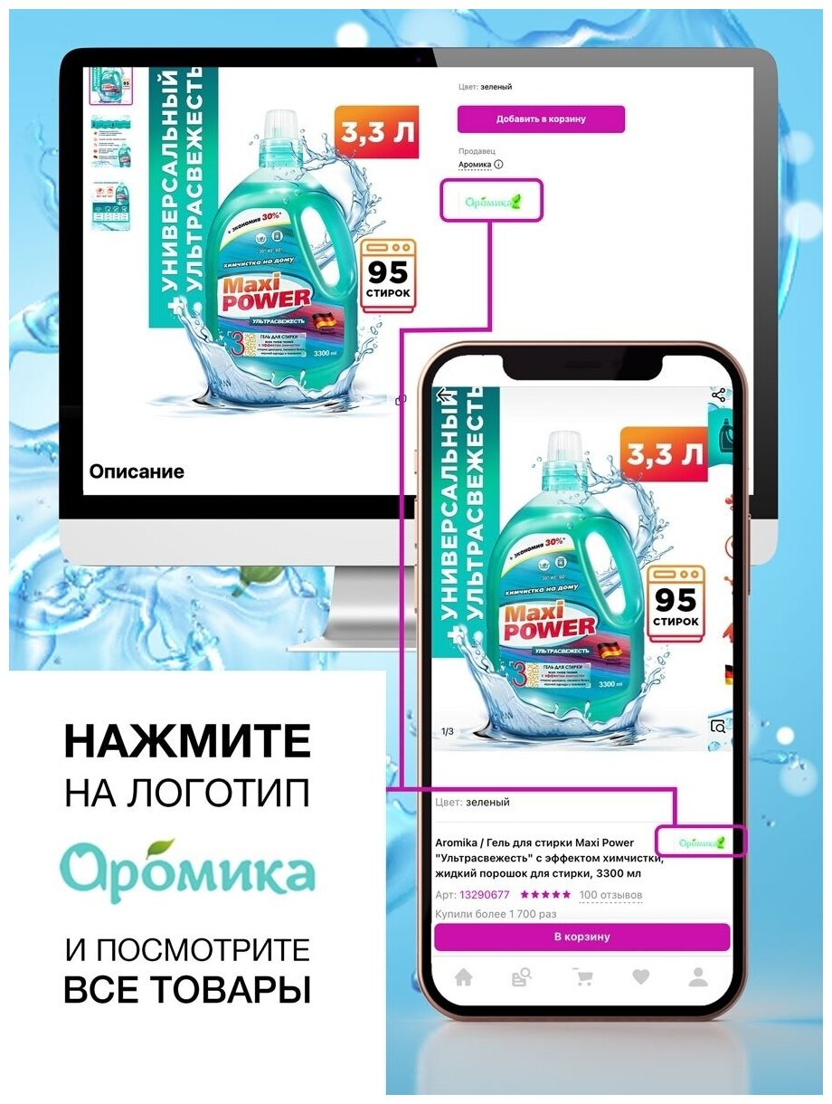 Аромика Maxi Power Химчистка Гель для стирки универсальный дезодорирующий с эффектом химчистки 3300 мл
