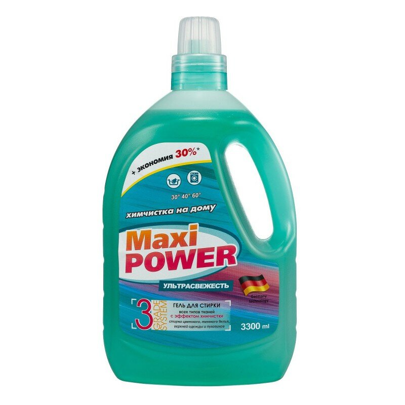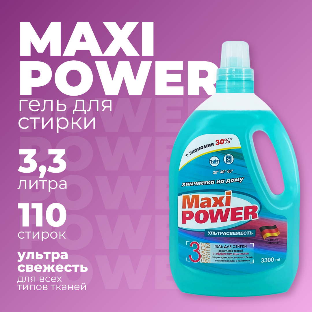 Купить Гель для стирки универсальный Maxi Power 3300мл химчистка+ультрасвежесть