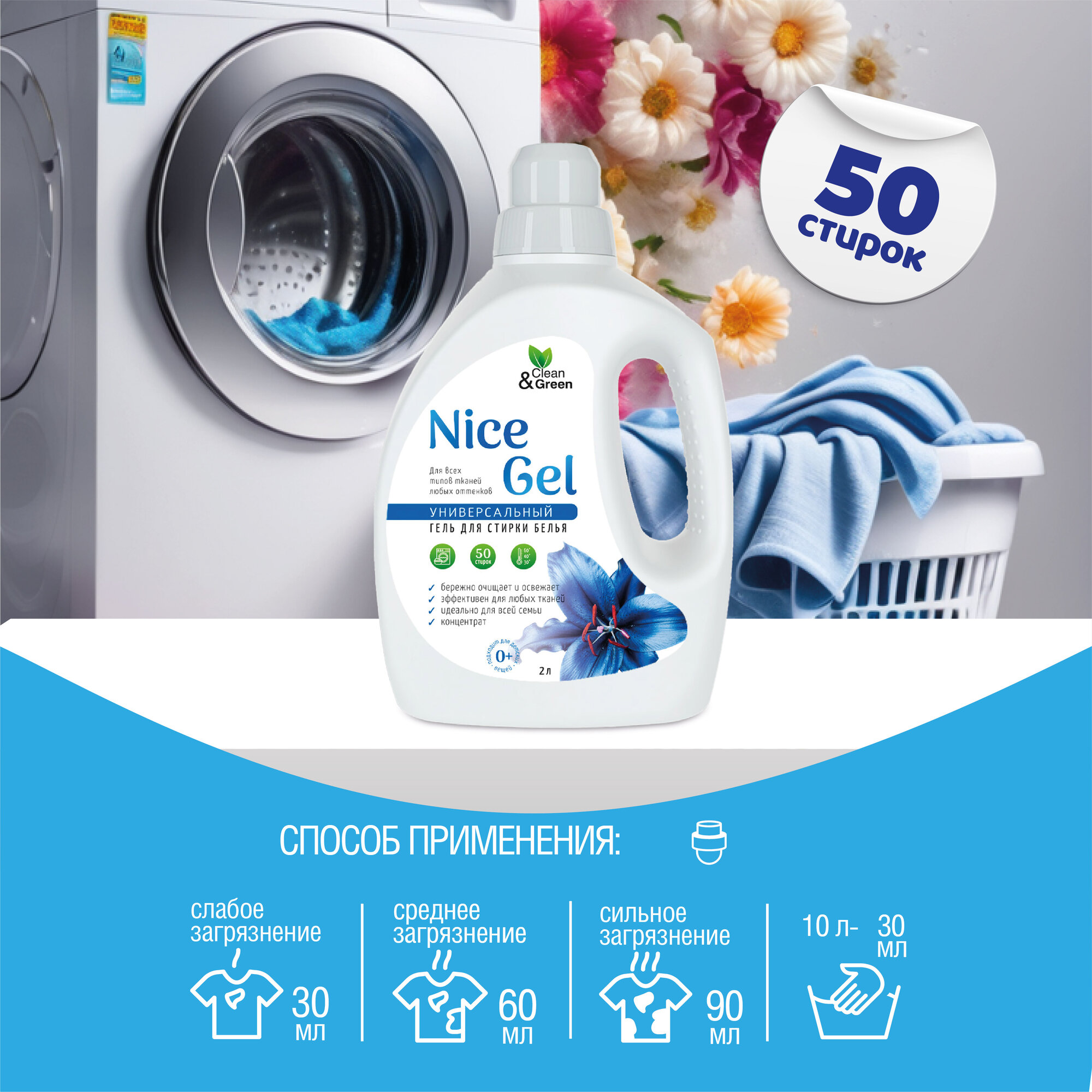 Гель для стирки "Nice Gel" универсальный (концентрат) 2 л. (ПЭНД) Clean&Green CG8288 интересное: