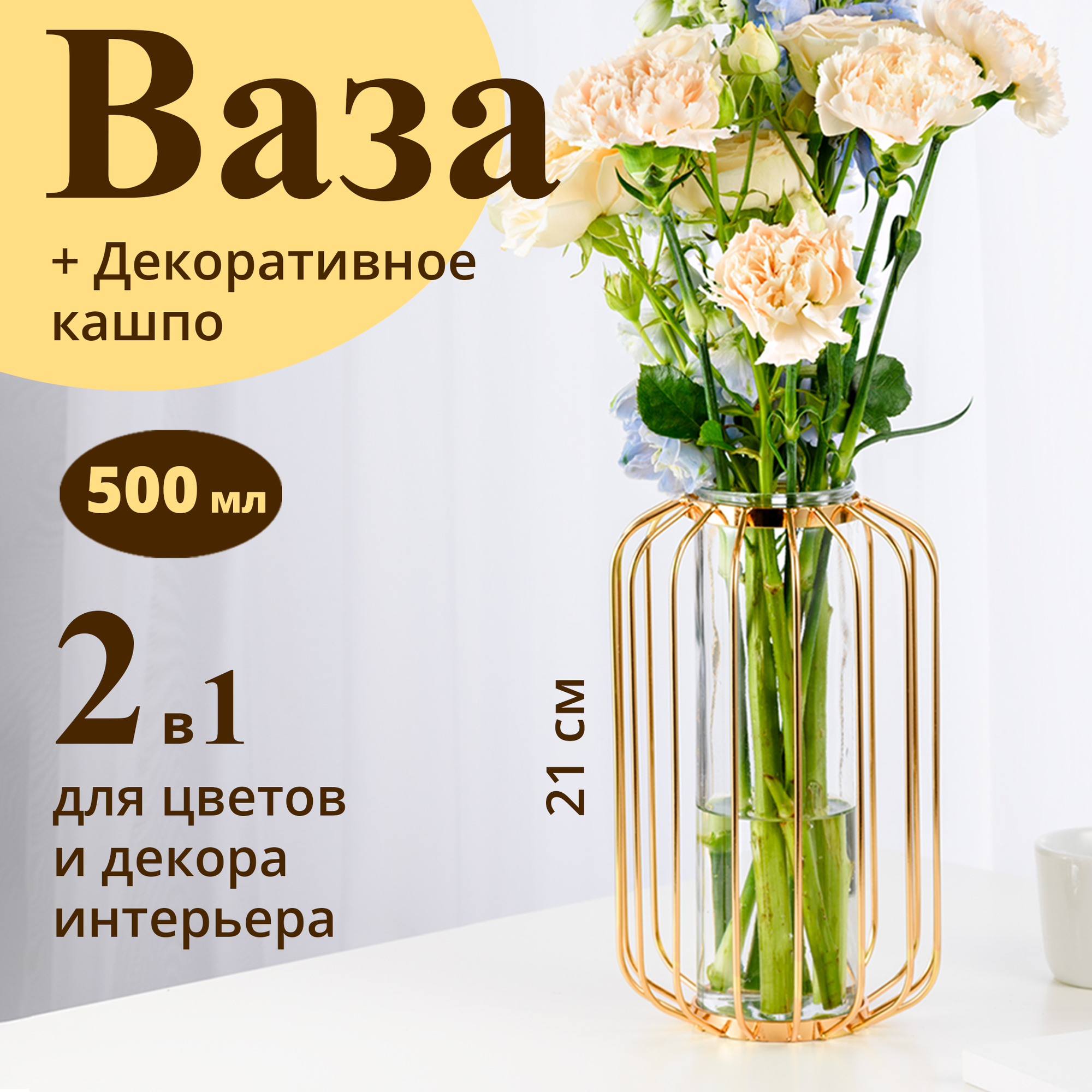 Ваза для цветов стеклянная Limpid Side, искусственные цветы для декора в горшке