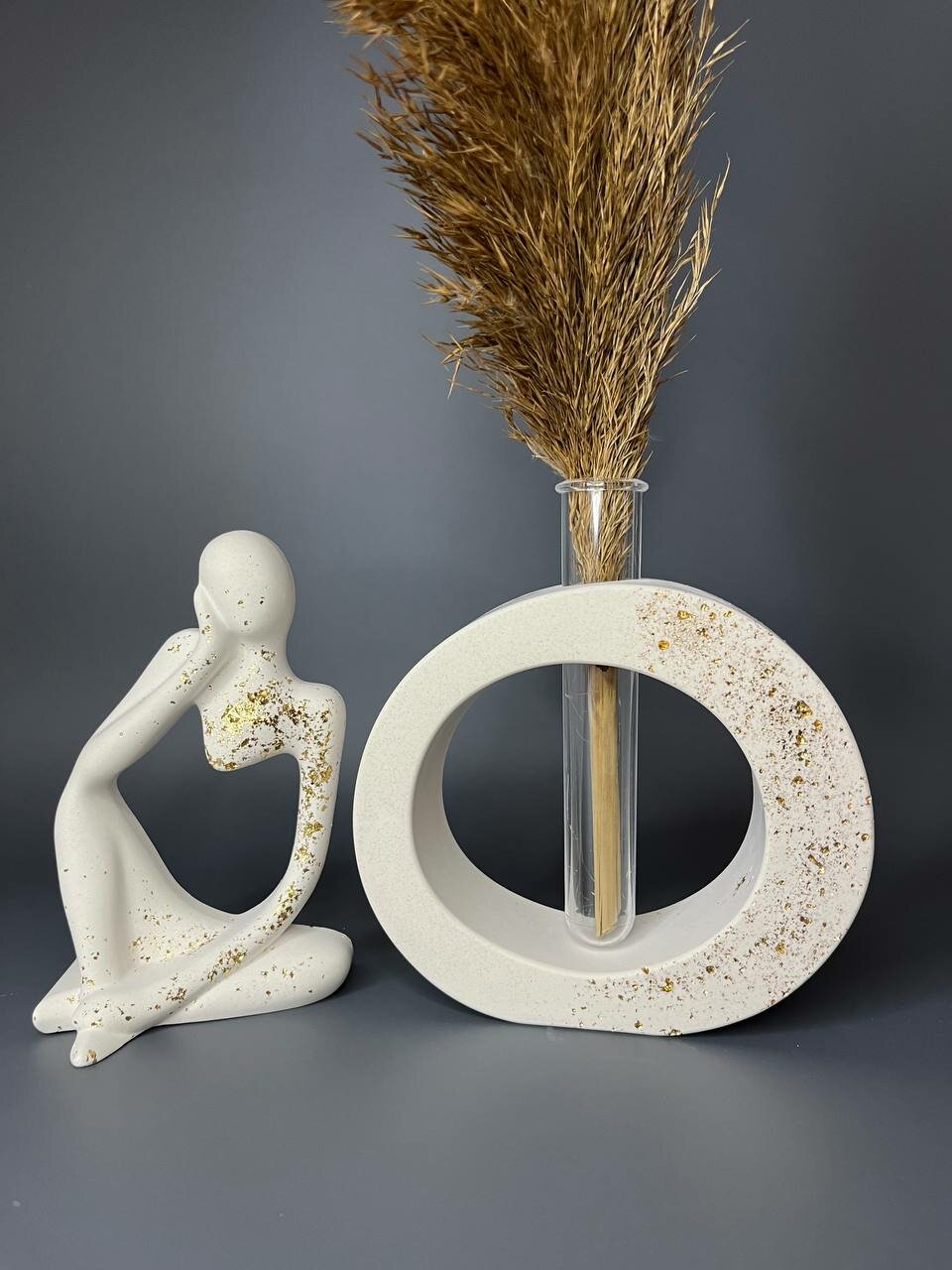 Ваза декоративная из гипса с колбой Набор Овальная Девушка Сердце Olivia Valdes Белая с Золотым опылением интересное: