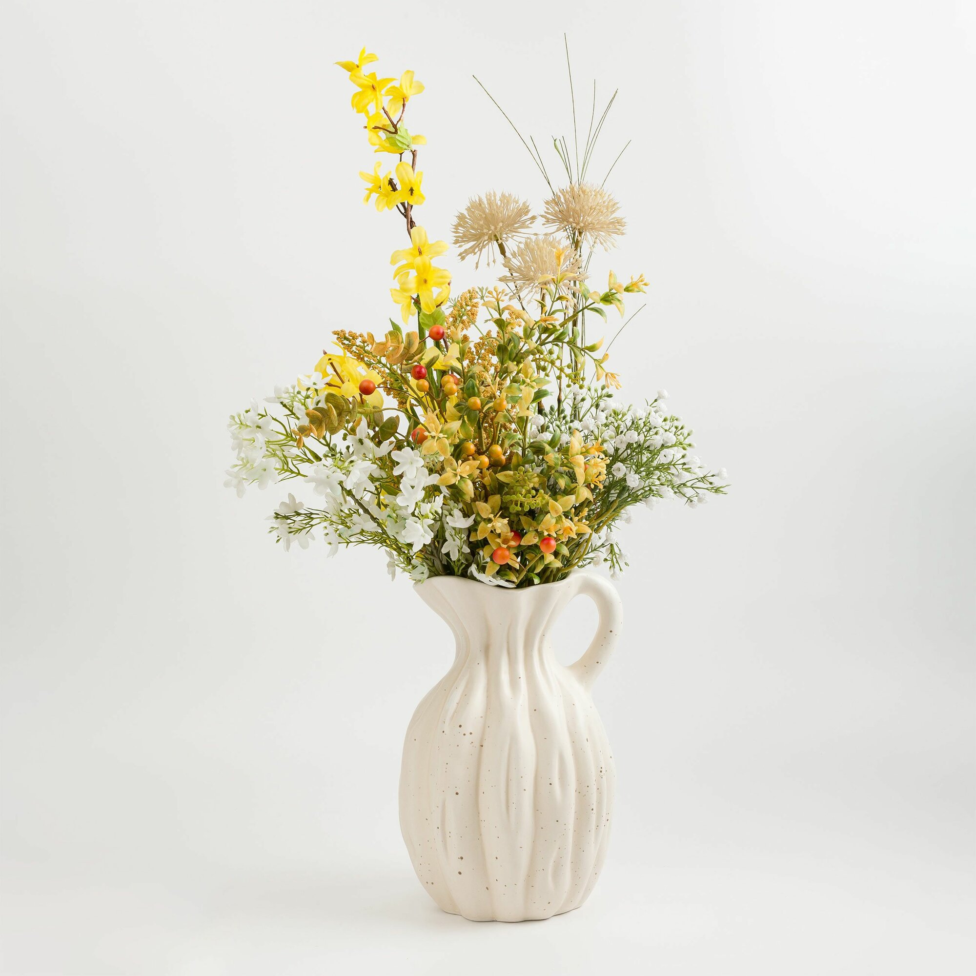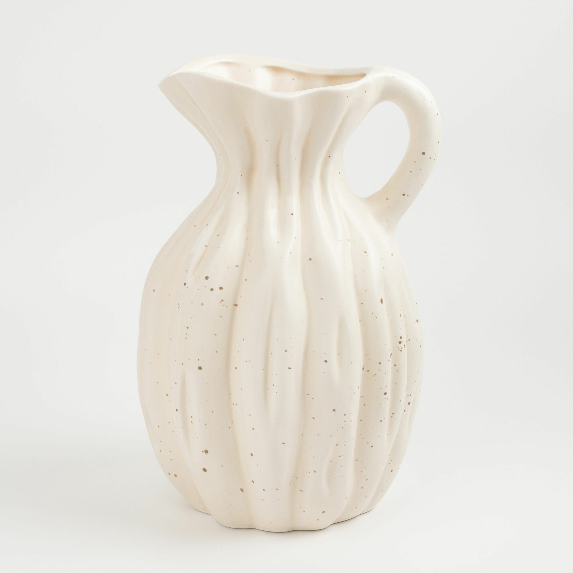 Купить Ваза для цветов, 25 см, с ручкой, керамика, молочная, в крапинку, Кувшин, Golden glow
