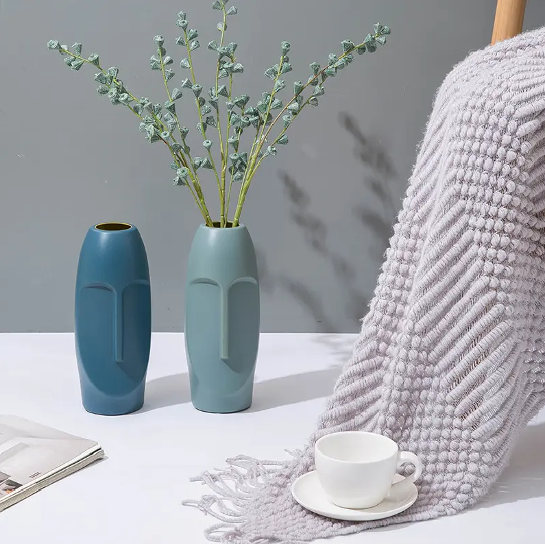 Купить Настольная пластиковая ваза для цветов в классическом стиле Homium Arya, цвет голубой, H24см