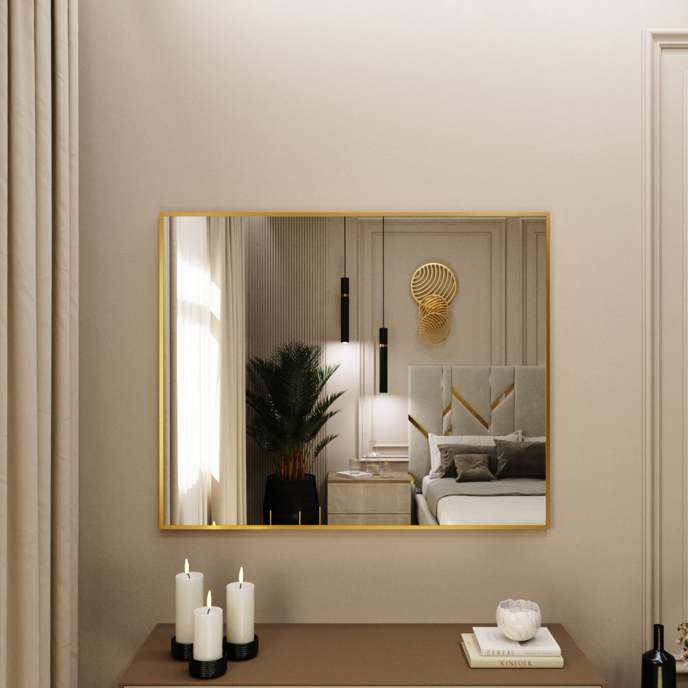 Зеркало настенное в алюминиевой раме Market-house , 100х50 см. Золото