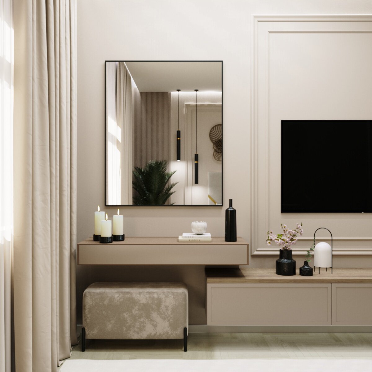 Зеркало настенное в алюминиевой раме Market-house , 100х80 см. Черное