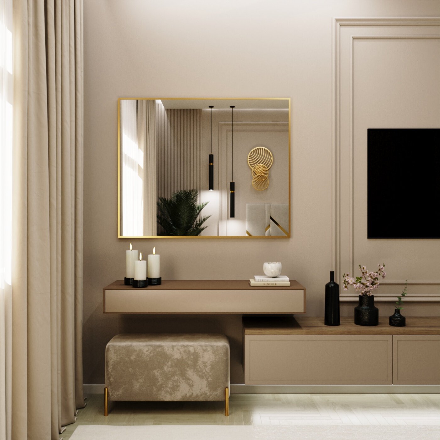 Зеркало настенное в алюминиевой раме Market-house , 100х80 см. Золото