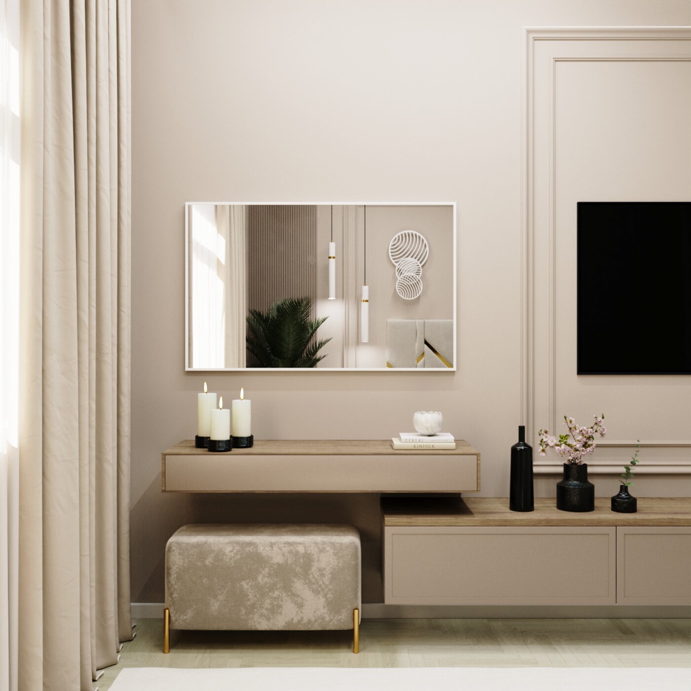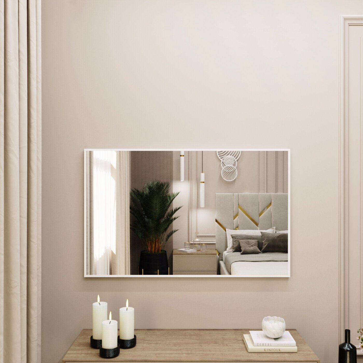Зеркало интерьерное в алюминиевой раме настенное Market-house 100х60 см. Белое
