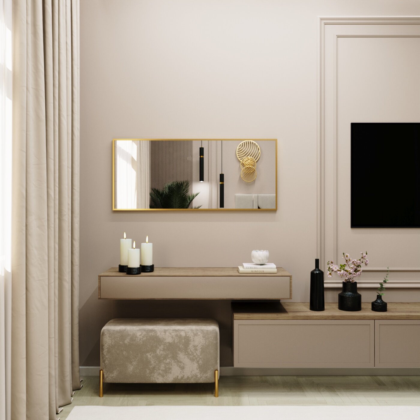 Зеркало настенное в алюминиевой раме Market-house , 100х50 см. Золото