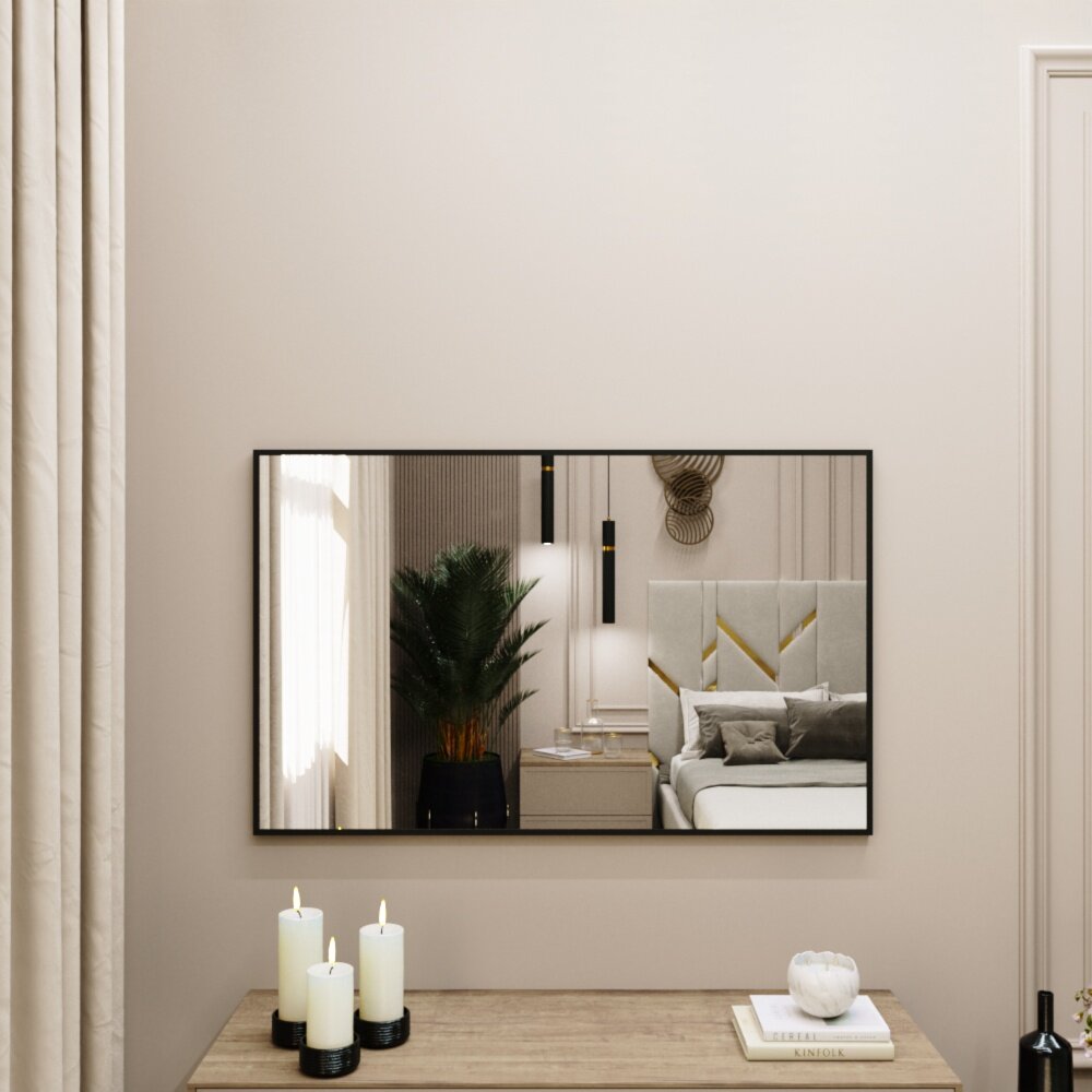 Зеркало интерьерное в алюминиевой раме настенное Market-house 100х70 см. Черное