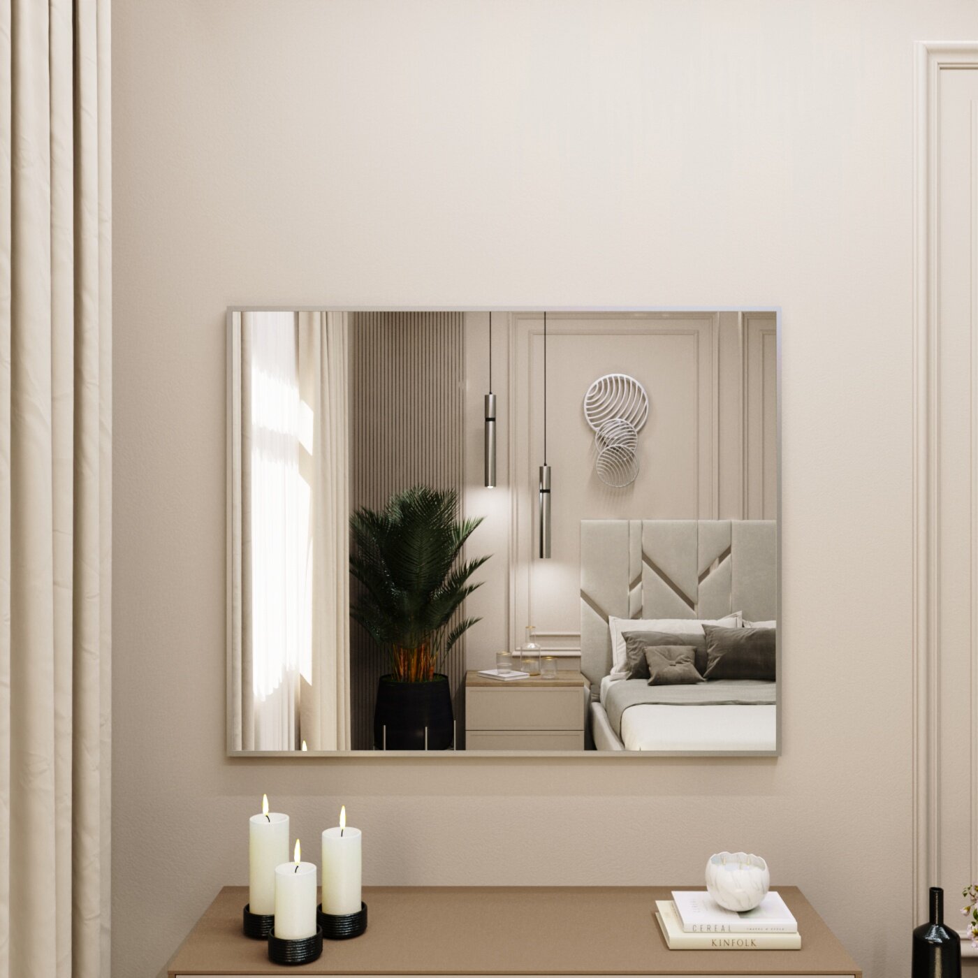 Зеркало настенное в алюминиевой раме Market-house , 100х90 см. Серебро