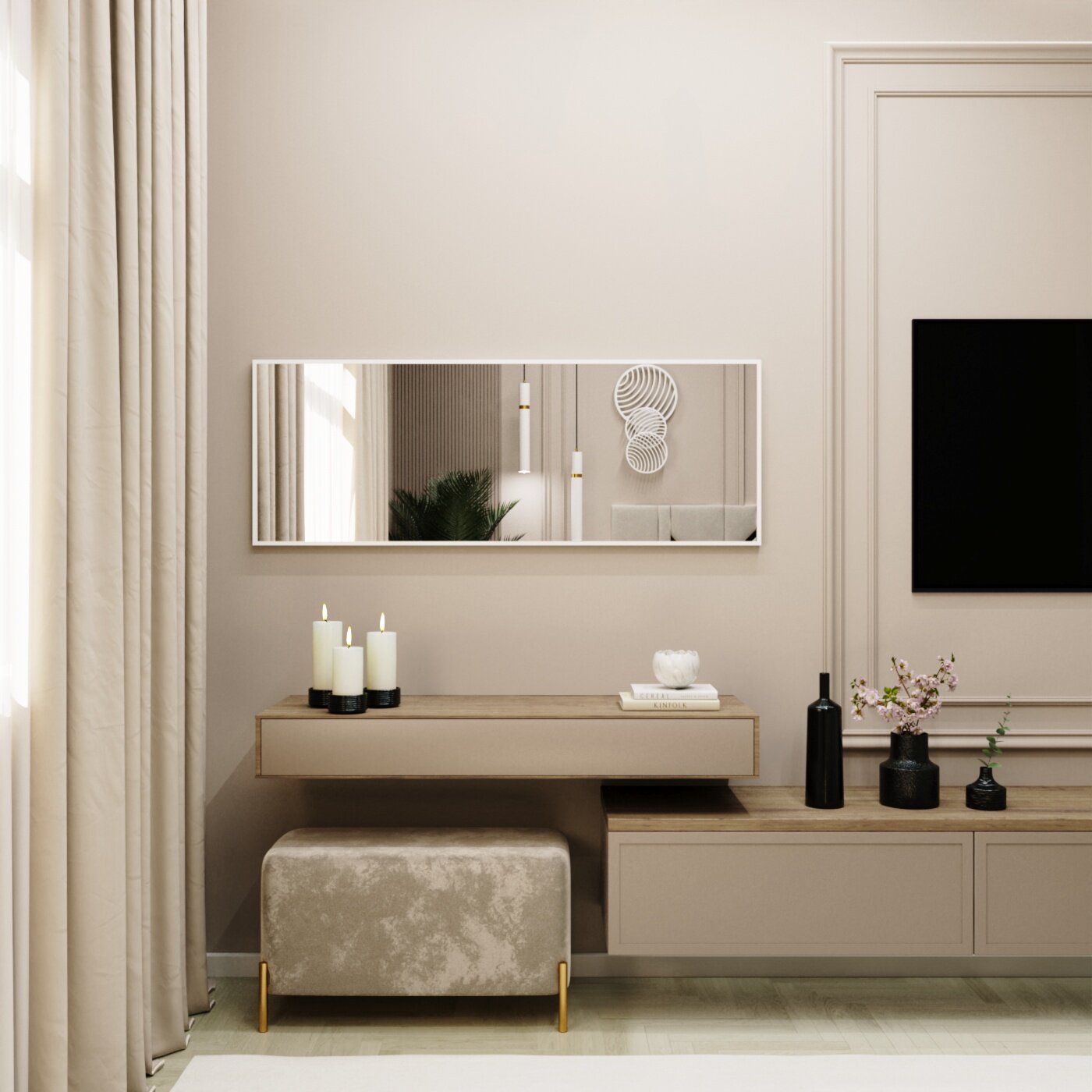 Зеркало настенное в алюминиевой раме Market-house , 120х40 см. Белое
