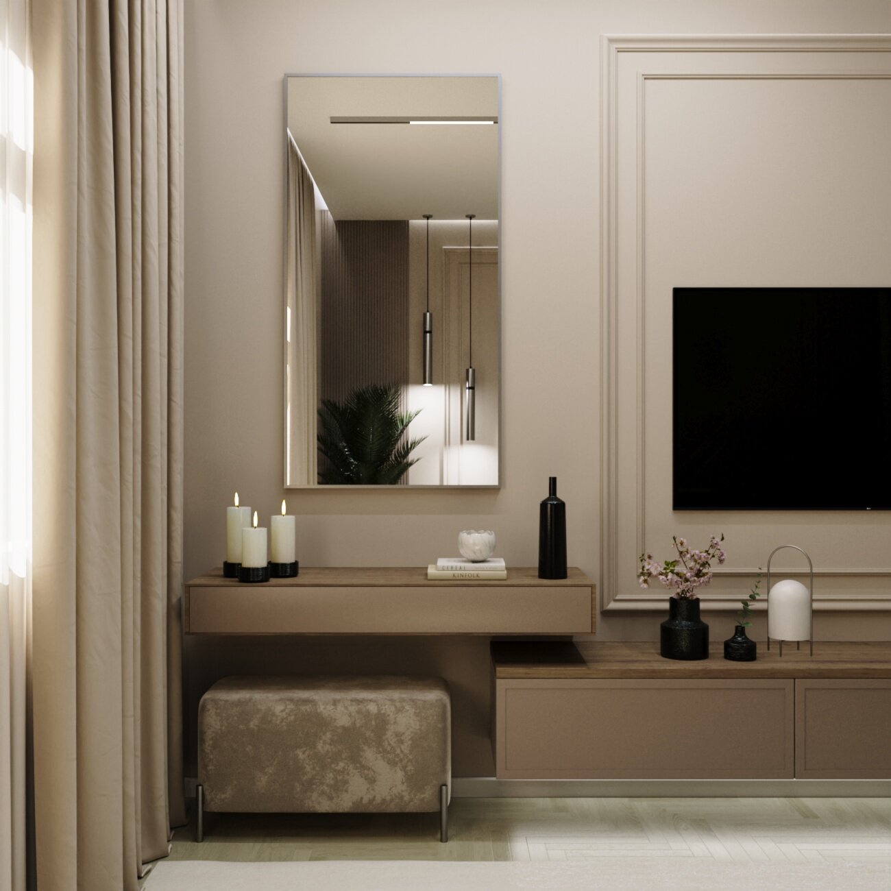 Купить Зеркало настенное в алюминиевой раме Market-house , 120х60 см. Серебро